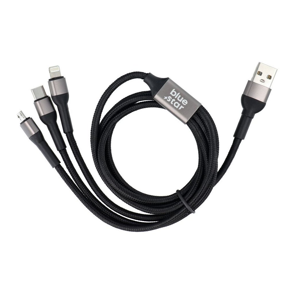Dátový kábel Blue Star - 3v1 micro USB, USB C a Lightning, 3A, čierny