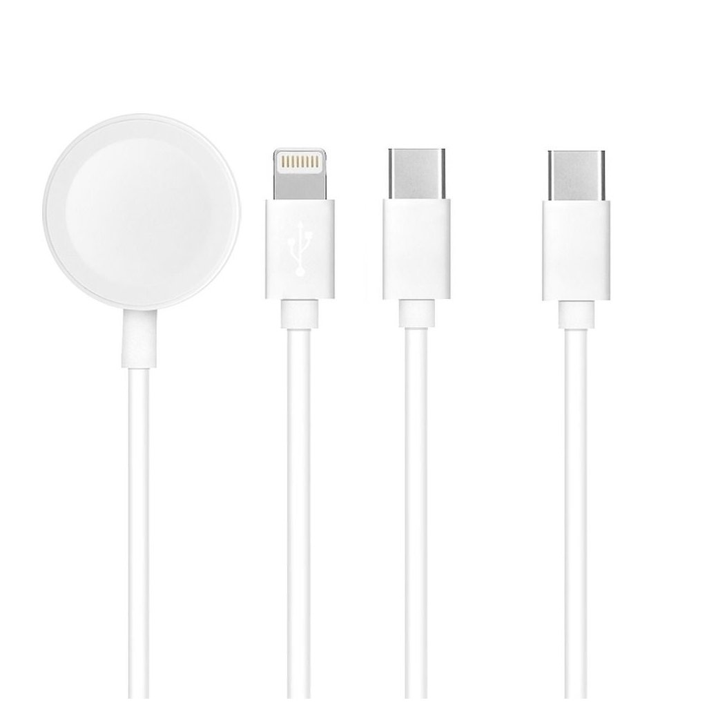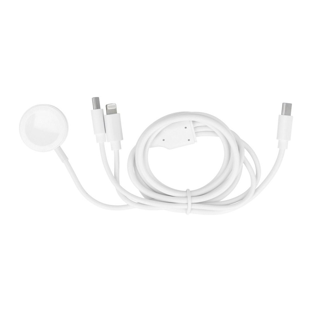 Nabíjací kábel 3v1, USB-C > USB-C/ Lightning/ Apple Watch 3W, 1.2m, biely, C3169