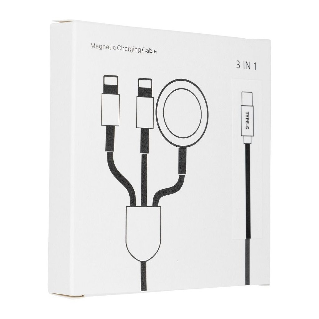 Nabíjací kábel 3v1 s konektorom iPhone Lightning, konektorom USB-C a bezdrôtovou nabíjačkou Apple iWatch. Umožňuje efektívne napájať až 3 zariadenia súčasne. Vhodné pre Apple iWatch, iPhone, iPad a tak ďalej.