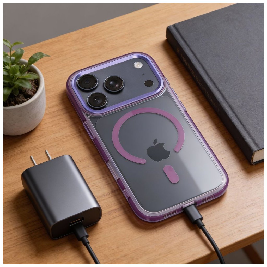 Puzdro je vybavené silným MagSafe krúžkom, ktorý zaisťuje stabilné a bezpečné pripevnenie kompatibilného príslušenstva a efektívne bezdrôtové nabíjanie.