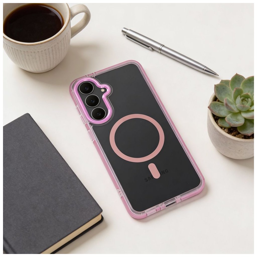 Puzdro FRAME CLEAR HYBRID MAG COVER kompatibilné s MagSafe pre SAMSUNG A56 práškovo ružové