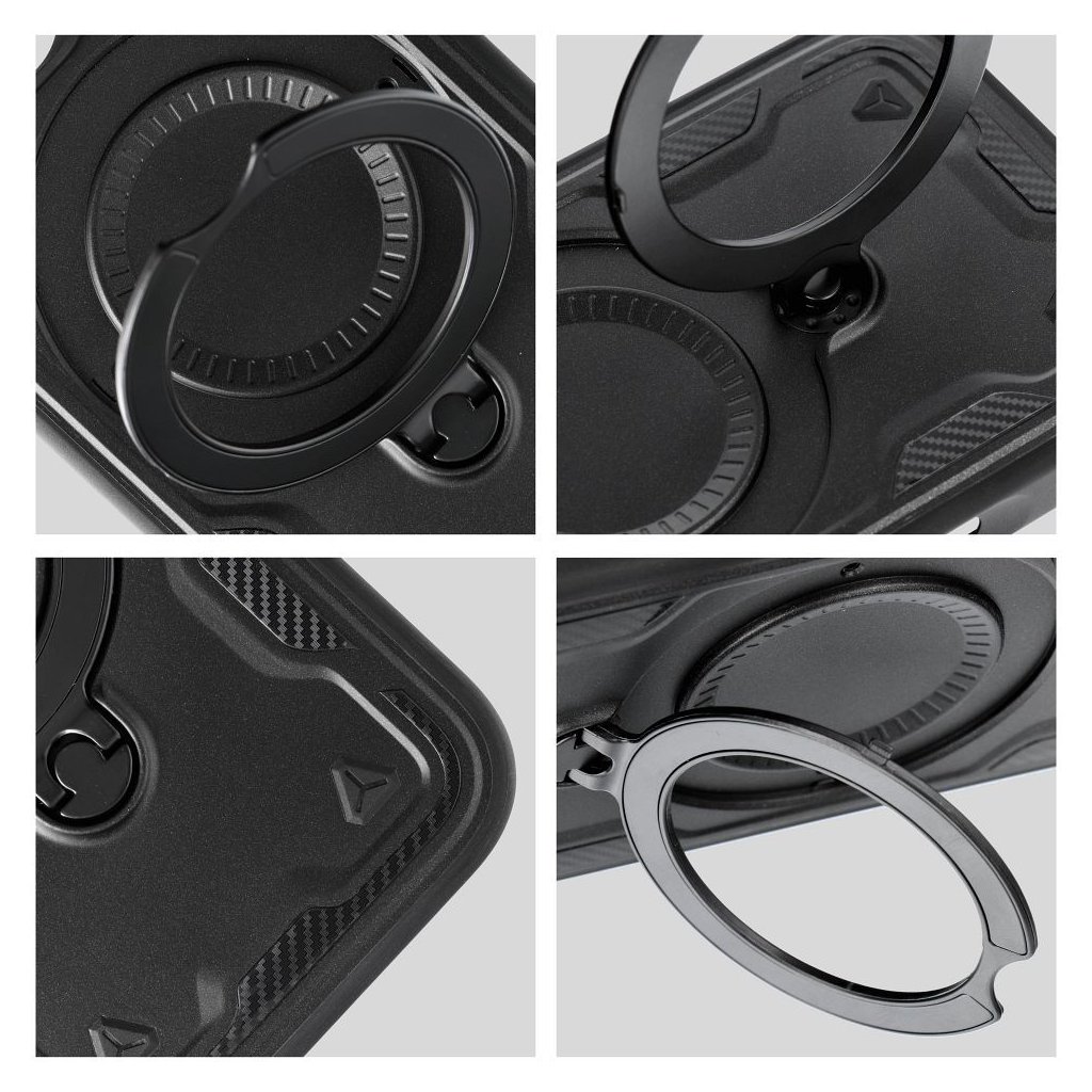 Prsteň skrytý v puzdre slúži ako stabilný stojan, vďaka čomu môžete telefón pohodlne umiestniť do horizontálnej polohy – skvelé riešenie pri sledovaní filmov alebo fotografií. Keď je puzdro zložené, prsteň sa začlení do puzdra bez toho, aby bránil nabíjaniu alebo používaniu zariadenia.