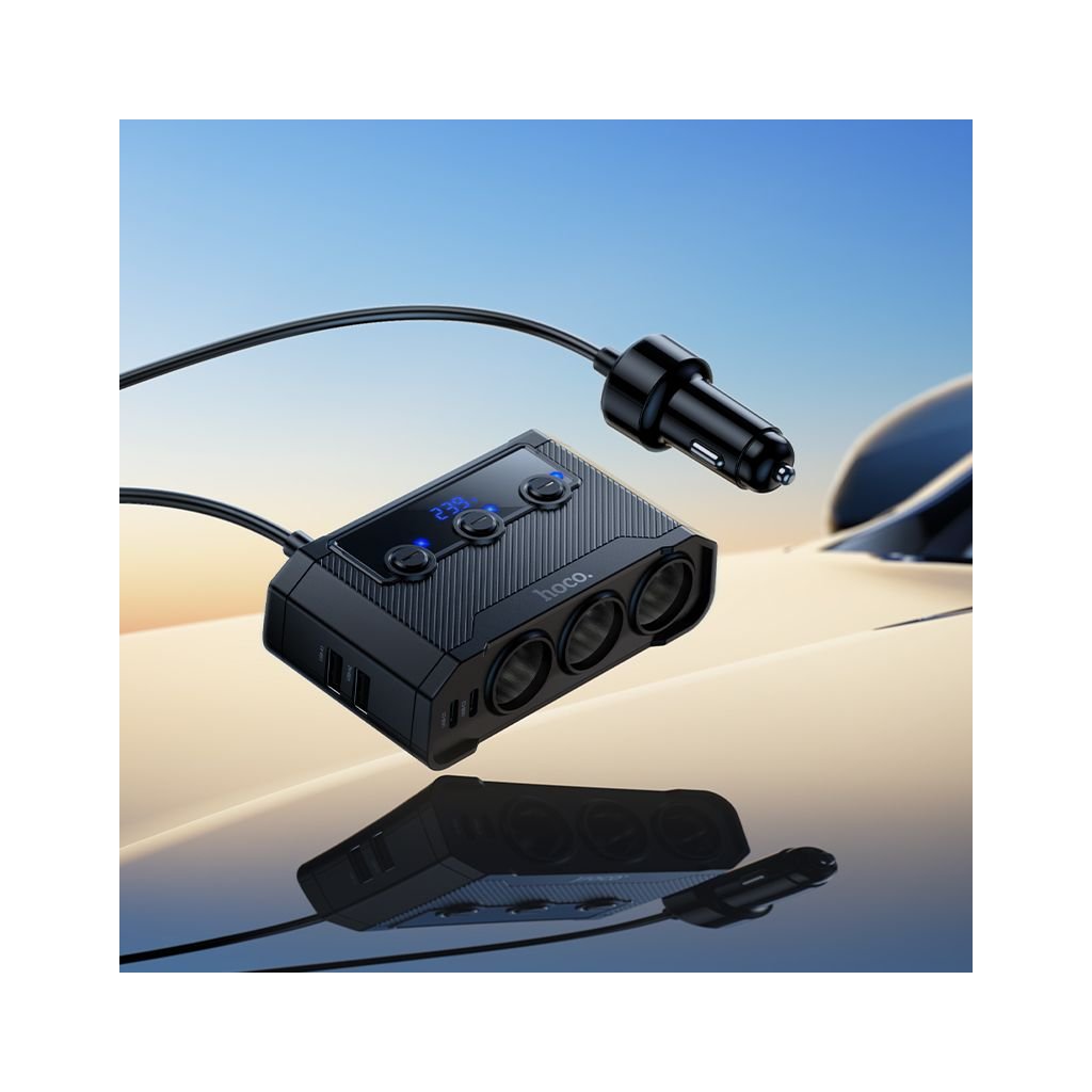 Autonabíjačka Hoco Z64 je pokročilý rozdeľovač napájania s výkonom až 240 W, vybavený tromi zásuvkami zapaľovača a štyrmi USB portmi (2 USB-C, 2 USB-A). To vám umožňuje súčasne napájať viacero zariadení – smartfóny, tablety, autokamery, navigačné systémy a rekreačné zariadenia – zatiaľ čo prehľadný LED displej zobrazuje aktuálne napätie batérie.