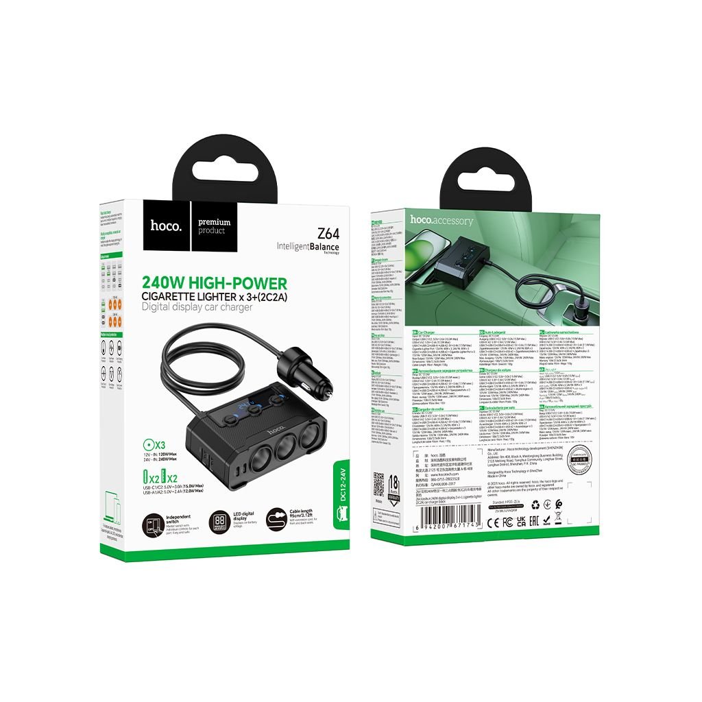 Autonabíjačka Hoco 2xUSB A + 2xUSB C+3x porty zapaľovača PD QC3.0 240W Z64 čierna