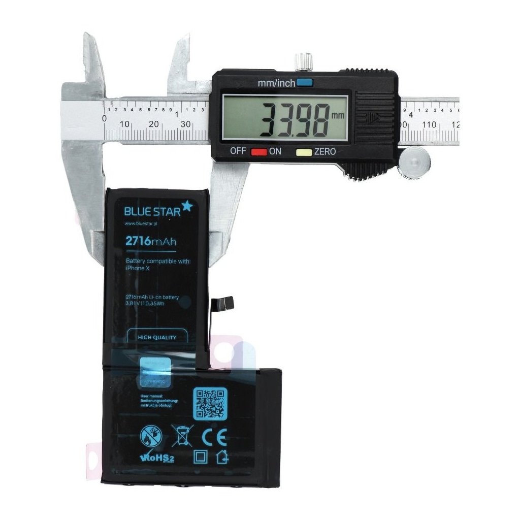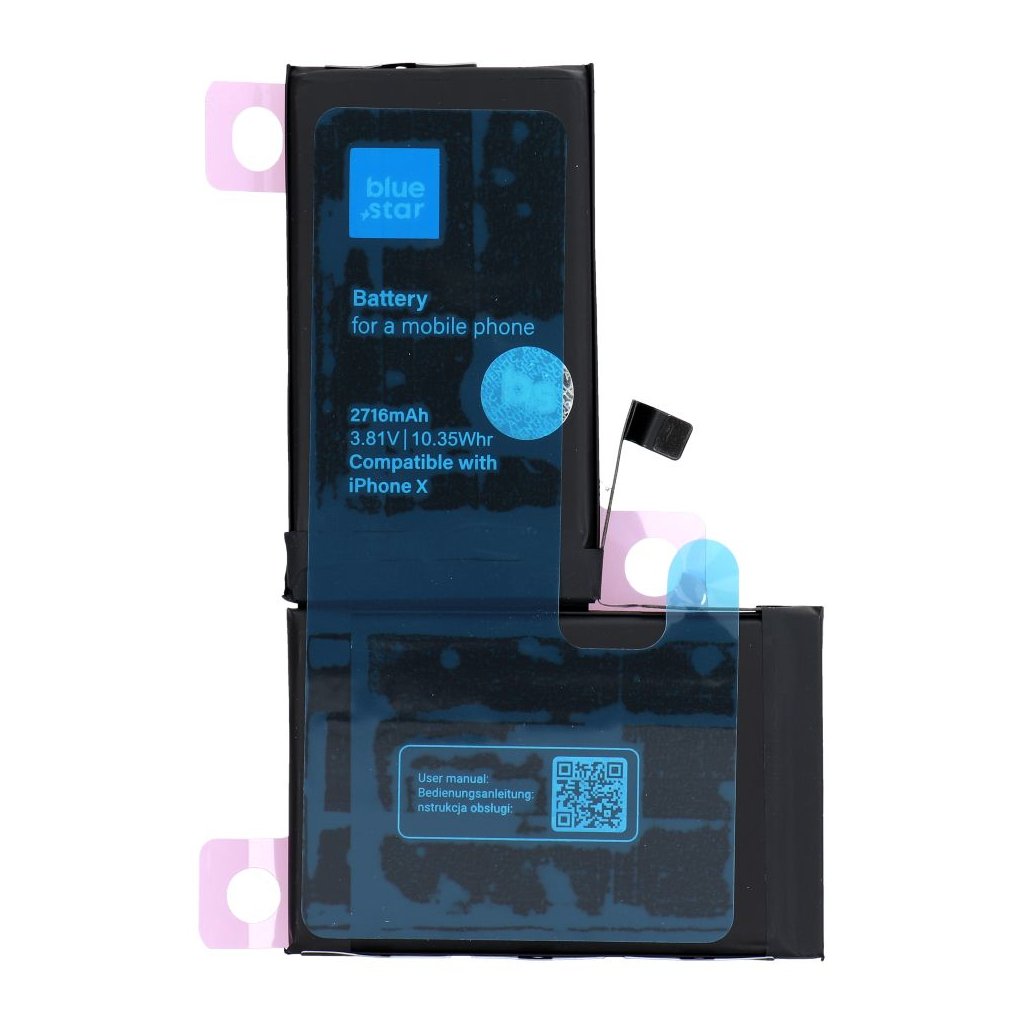 Kvalitná náhradná polymérová batéria pre iPhone X 2716 mAh Blue Star HQ umožňuje dlhšie používanie vášho telefónu. Je vyrobená s použitím najmodernejších technológií vrátane laserového zvárania a presnej automatizácie, vďaka čomu sa eliminujú chyby vzniknuté pri manuálnej výrobe. Batéria Blue Star HQ tak zaručuje dlhšiu životnosť ako štandardné batérie. Je chránená proti prebitiu, prepólovaniu a prehriatiu. Je vybavená dvoma bezpečnostnými IC obvodmi a nemá pamäťový efekt. Polymérová batéria BlueStar nahrádza originálnu batériu.