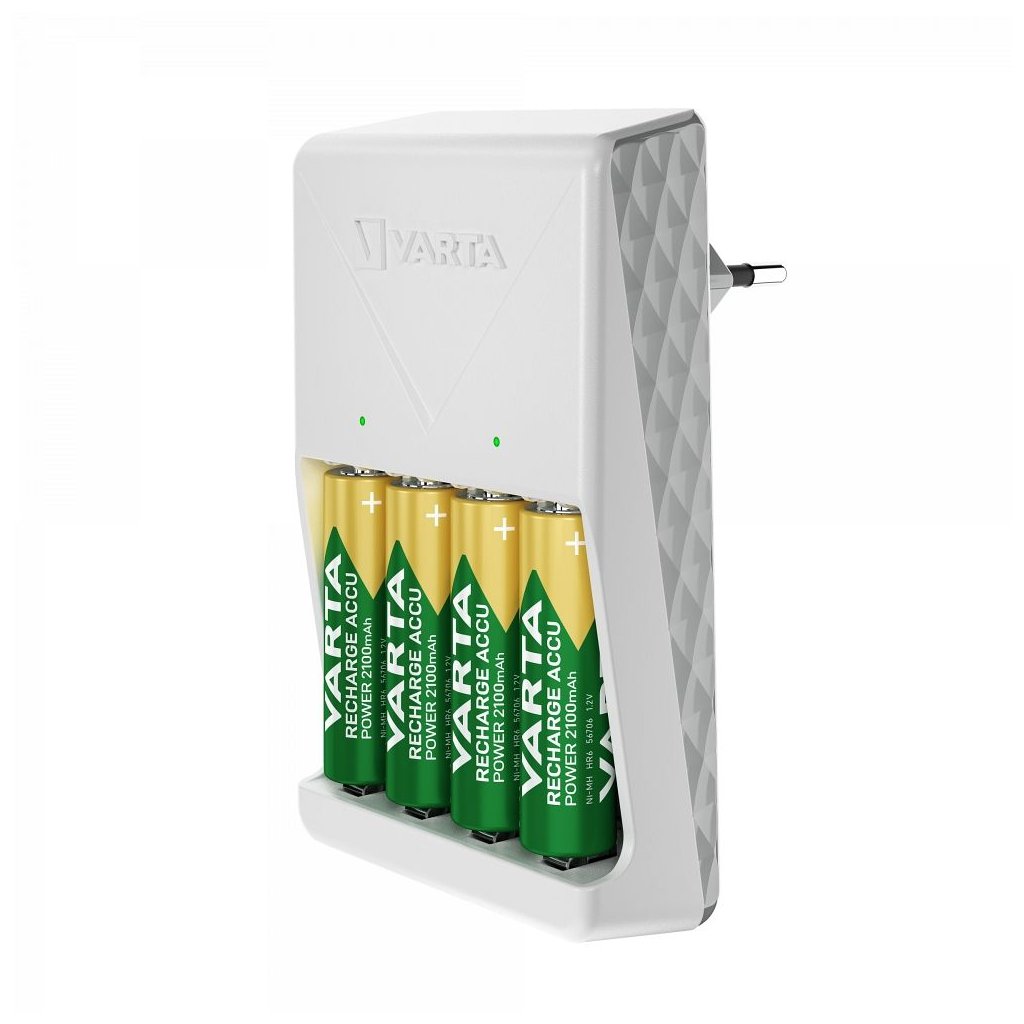 Nabíjačka VARTA Plug Charger je praktické a užívateľsky prívetivé zariadenie, ideálne na nabíjanie nabíjateľných NiMH batérií veľkosti AA a AAA. Sada obsahuje 4 nabíjateľné AA batérie s kapacitou 2100 mAh, vďaka čomu je kompletným riešením pre každodenné použitie. Zelené LED indikátory poskytujú aktuálne informácie o procese nabíjania, zatiaľ čo funkcia udržiavacieho nabíjania zaisťuje najlepšie výsledky.