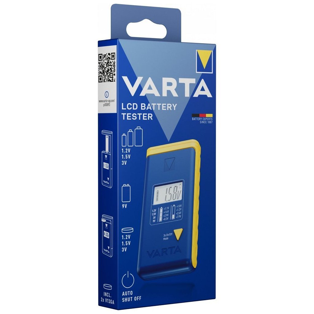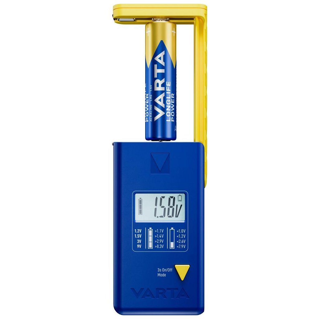 Tester batérií VARTA s digitálnym displejom (AA, AAA, typ C, typ D, 9V, gombíkový) 893101111 modrý