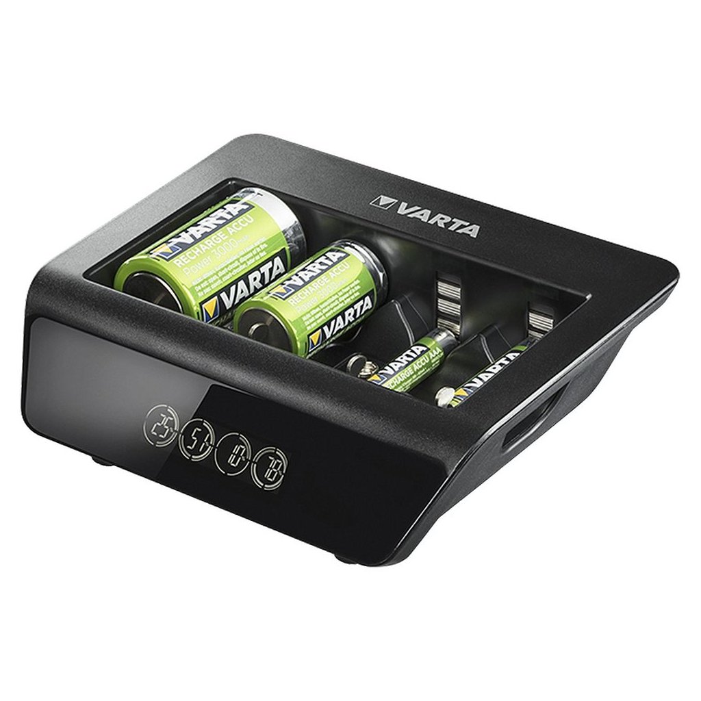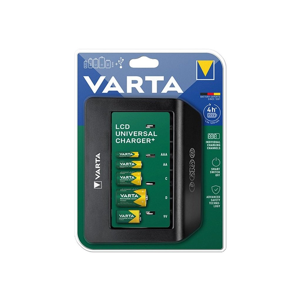 Univerzálna nabíjačka VARTA LCD+ je všestranné zariadenie, ktoré kombinuje funkčnosť s moderným dizajnom. Je ideálna na nabíjanie NiMH nabíjateľných batérií vo veľkostiach AA, AAA, C, D a 9V. Vďaka možnosti nabíjania až 4 článkov súčasne a jednotlivým nabíjacím kanálom ponúka flexibilitu a optimálne výsledky. Intuitívny LCD displej uľahčuje sledovanie procesu nabíjania, zatiaľ čo pokročilé bezpečnostné funkcie, ako je metóda Minus Delta V, časovač vypnutia a ochrana proti skratu, zaisťujú spoľahlivé a bezpečné používanie. Technické špecifikácie: