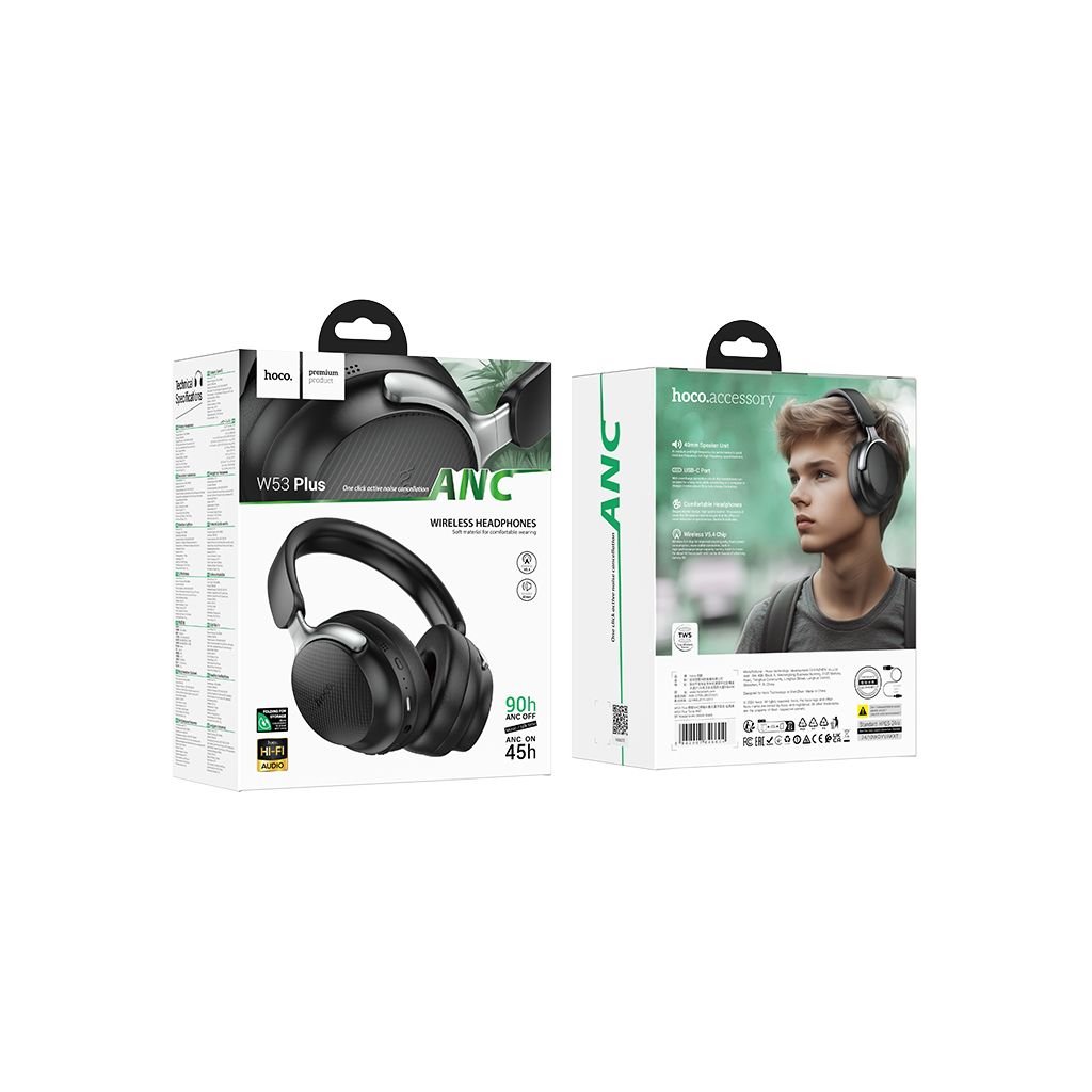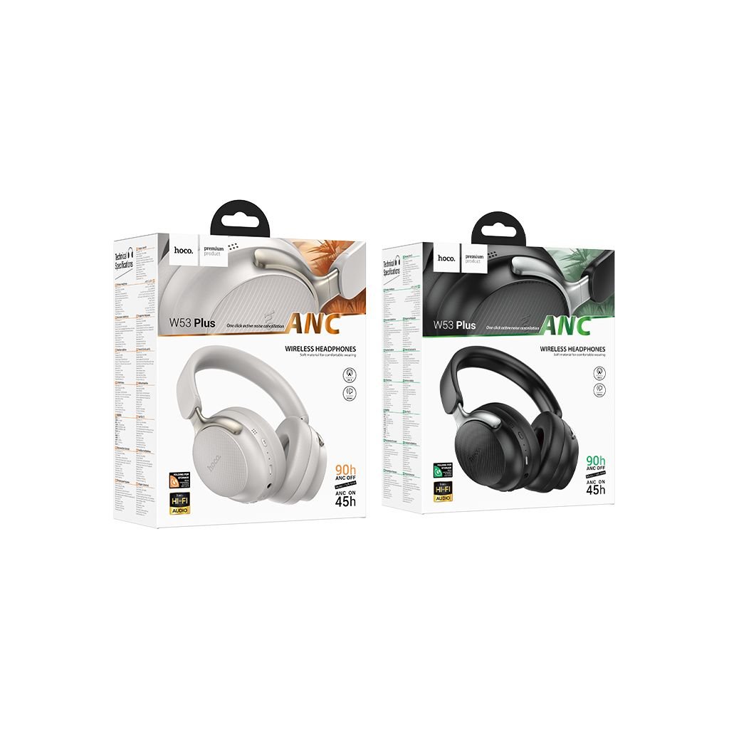 Bezdrôtové slúchadlá Hoco W53 Plus s ANC kombinujú modernú technológiu s klasickým, nadčasovým dizajnom. Či už relaxujete doma alebo na cestách, tieto slúchadlá vám poskytnú výnimočnú kvalitu zvuku a komfort pri používaní.