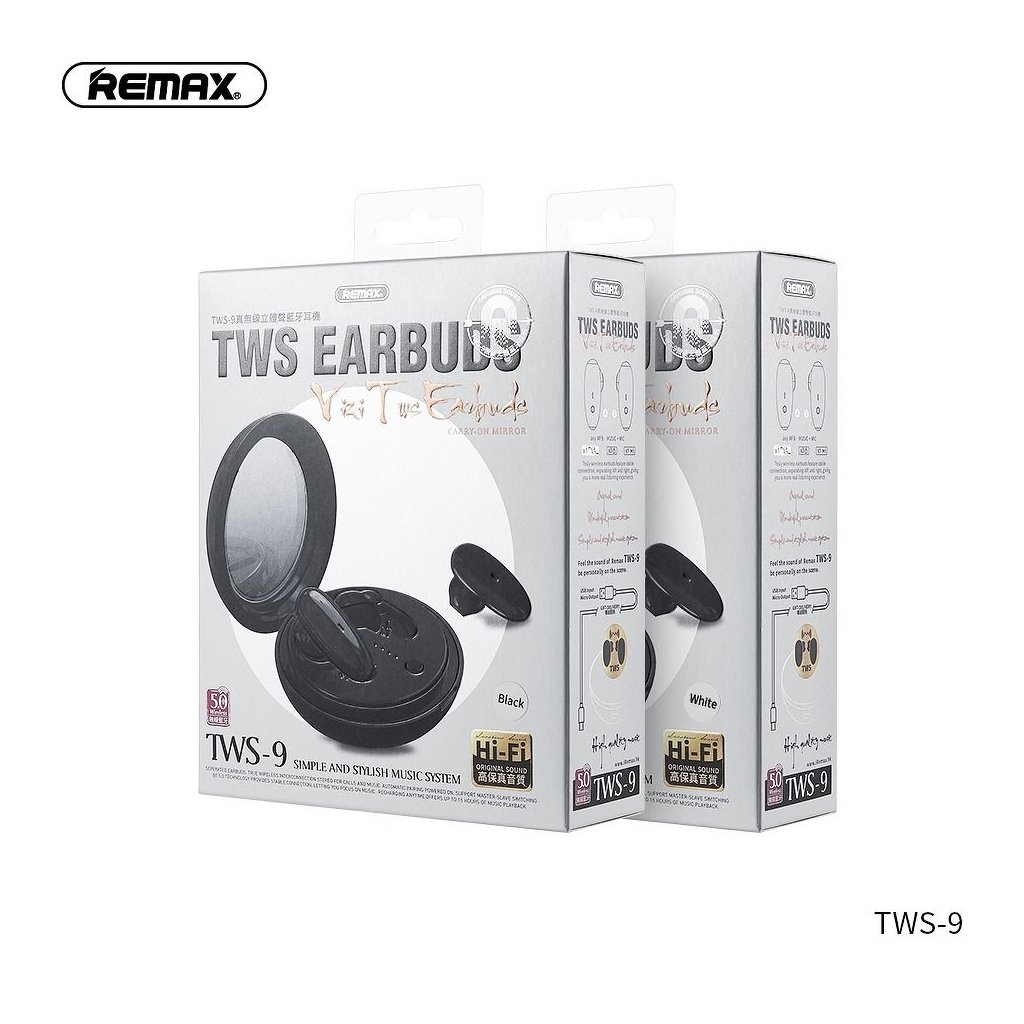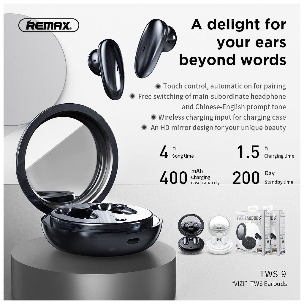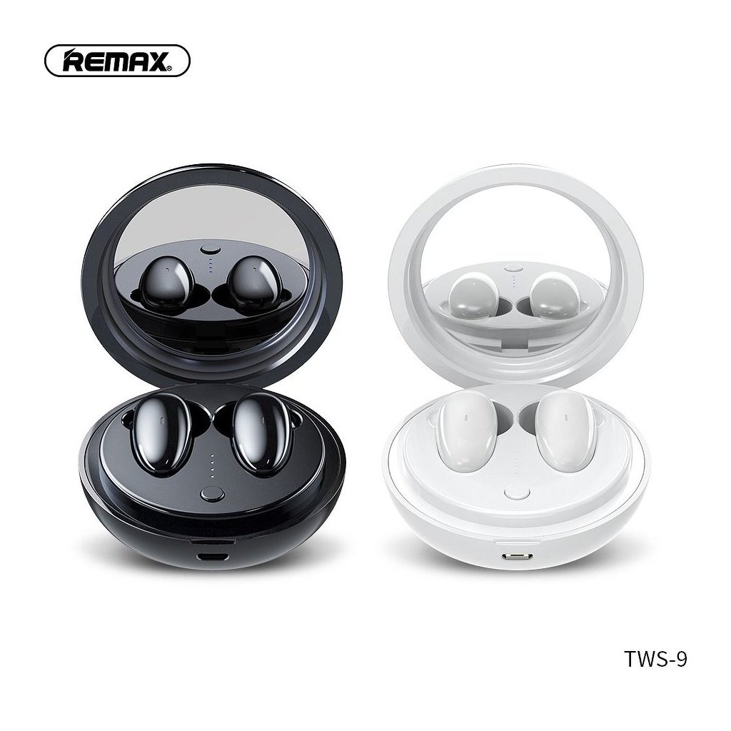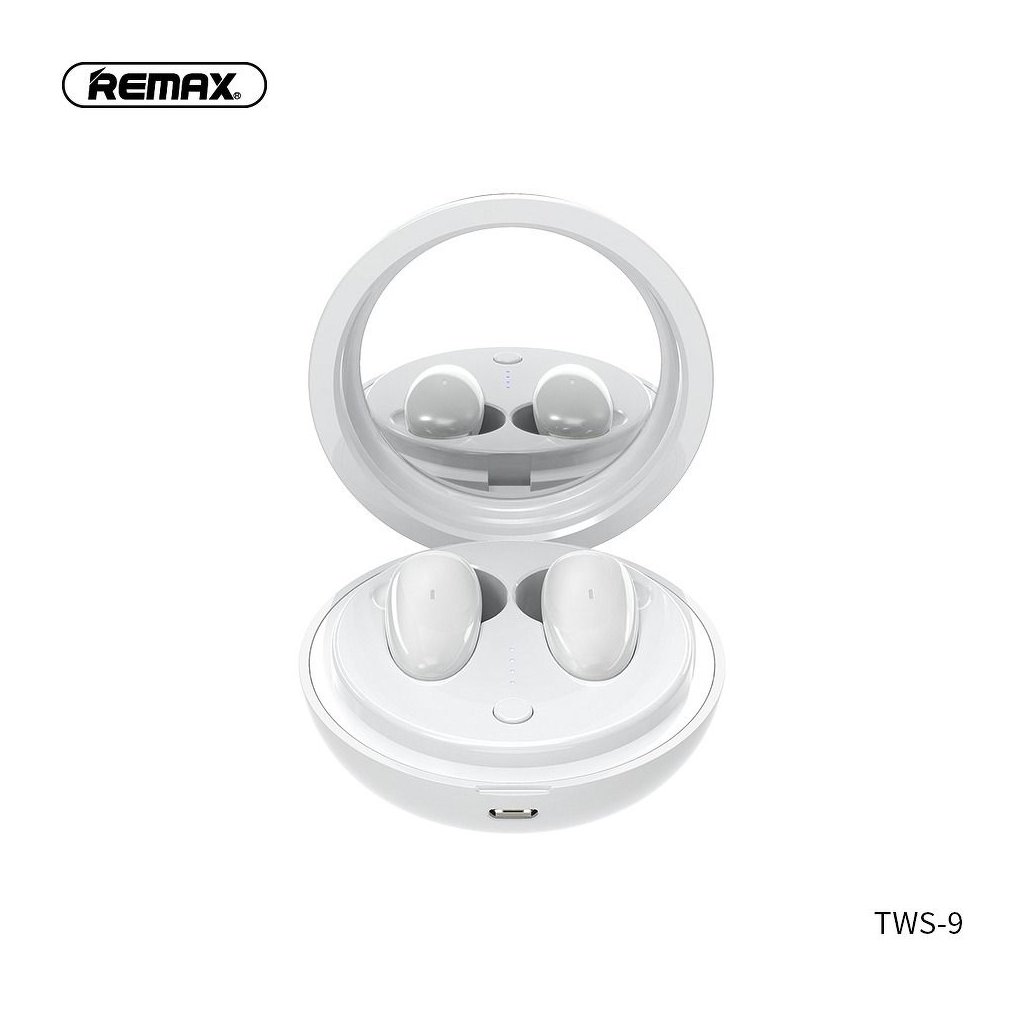 Bezdrôtové stereo slúchadlá REMAX TWS-9 s dokovacou stanicou a zrkadlom biele