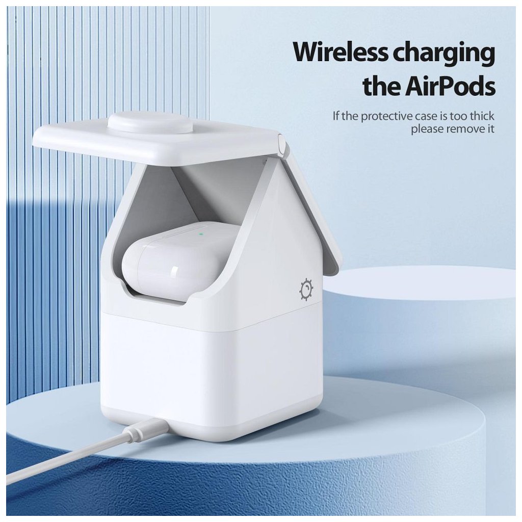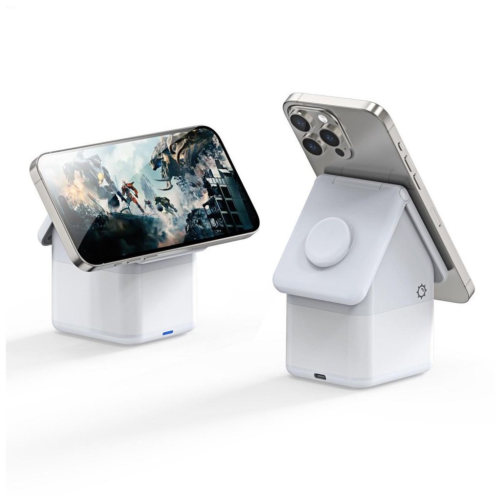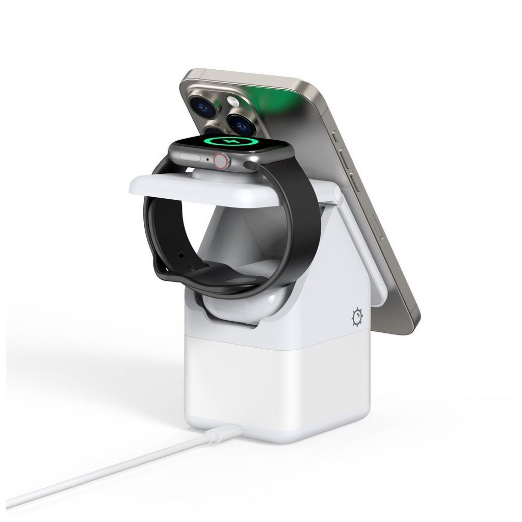 Bezdrôtová nabíjačka W20 4 v 1 v tvare domu, magnetická, 15 W, biela