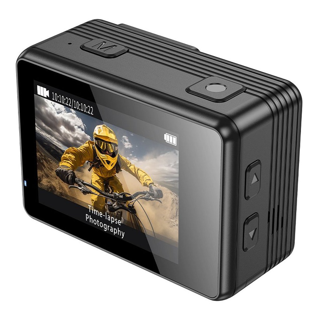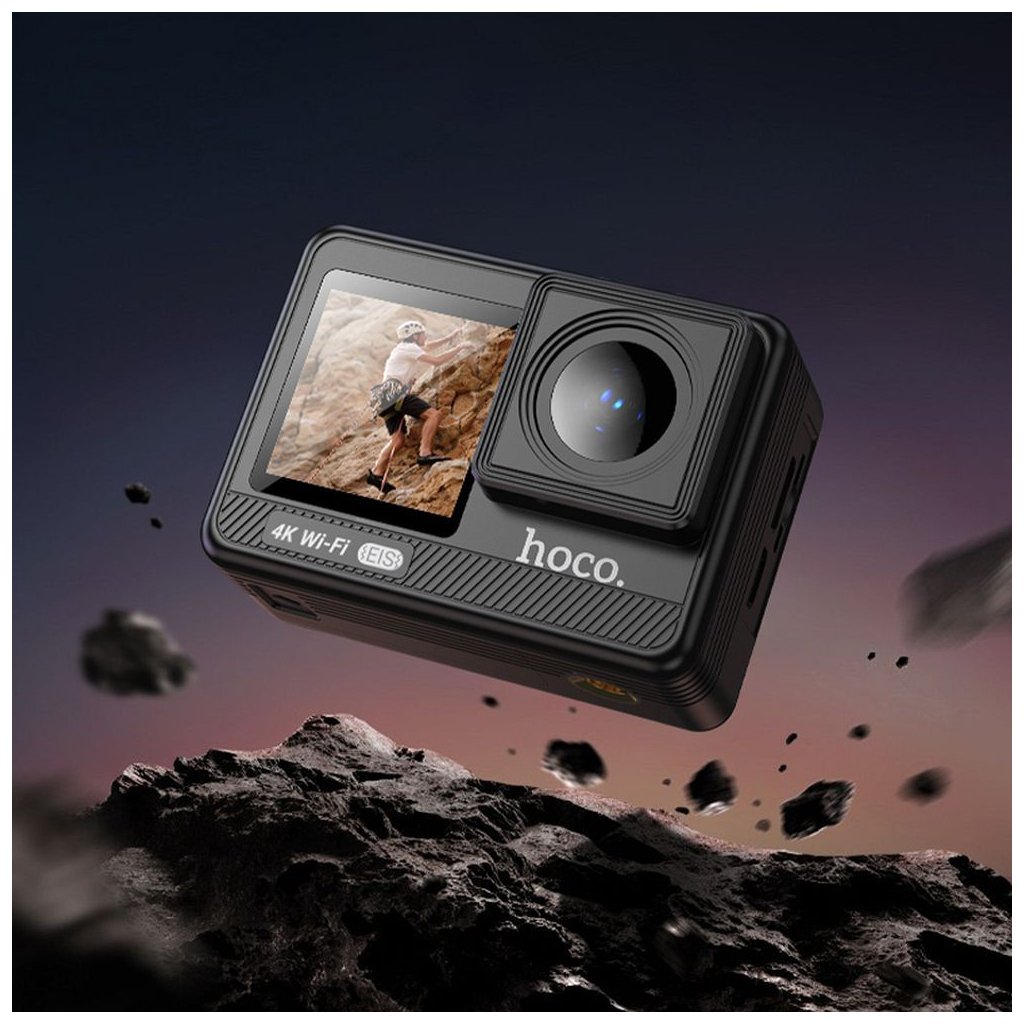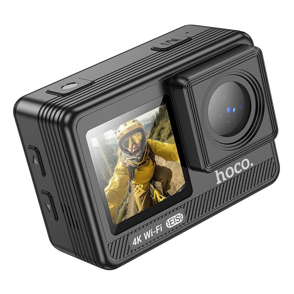 Športová kamera HOCO s digitálnymi displejmi 1,3" + 2" s stabilizáciou obrazu IPS 4K DV102 čierna
