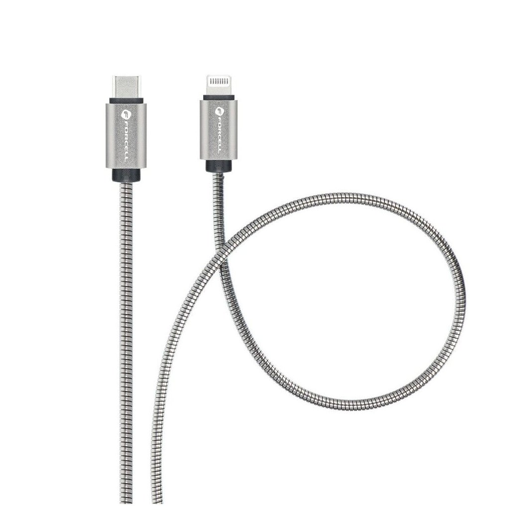 Kovový kábel FORCELL USB-C na Lightning QC3.0 PD27W 1m strieborný (C238)
