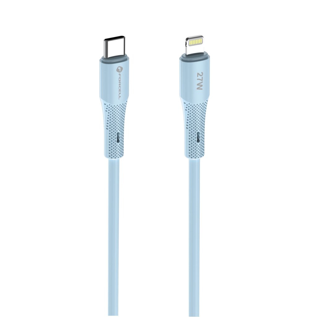 Silikónový kábel FORCELL F-ENERGY C346, typ C, Lightning, PD 3A, 27W, 1 m, modrý