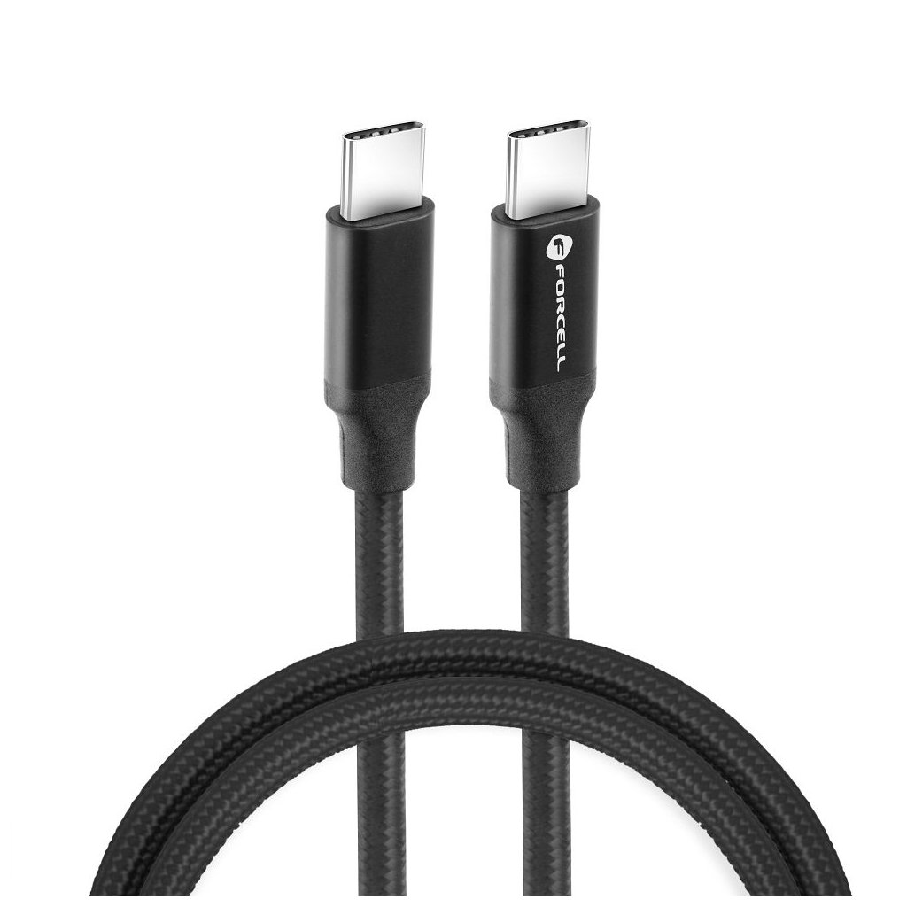 FORCELL nabíjací kábel USB-C > USB-C QC4.0 5A/20V PD100W E-mark/ 4K/ Thunderbolt/ 20Gbit/s 1m čierny C391