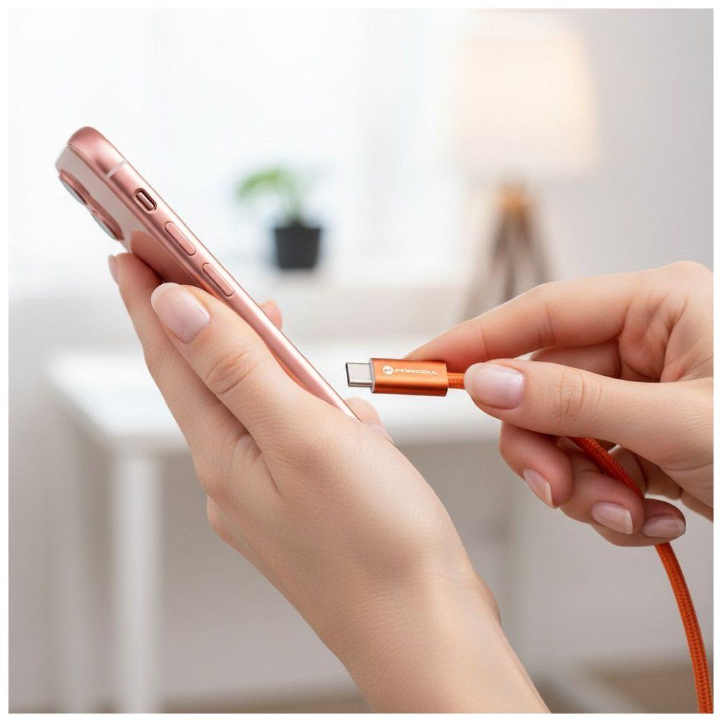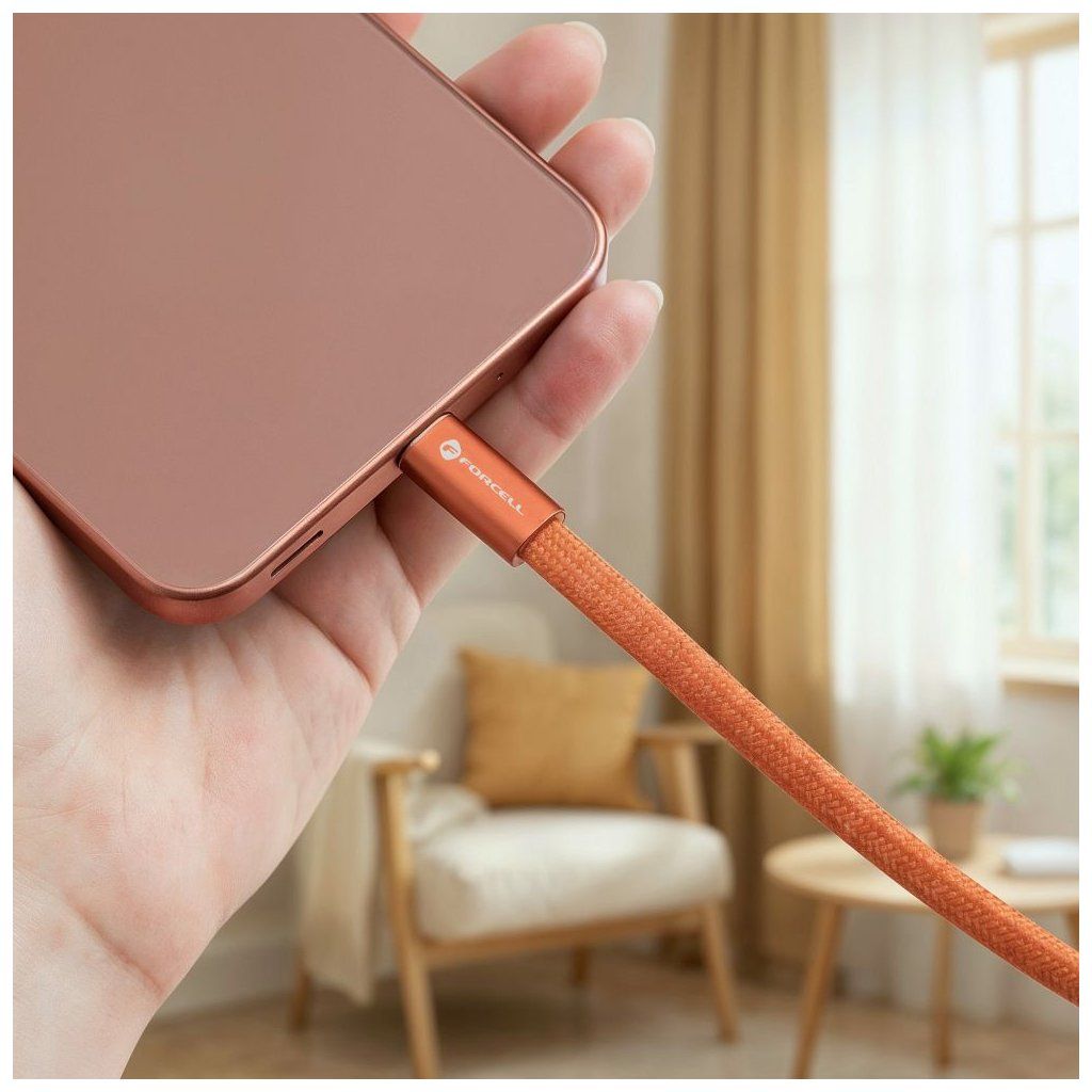 Kábel USB-C na USB-C Forcell F-Energy QC4.0 PD 5 A 100 W Cafule Flat 1,2 m CCFN23 oranžový
