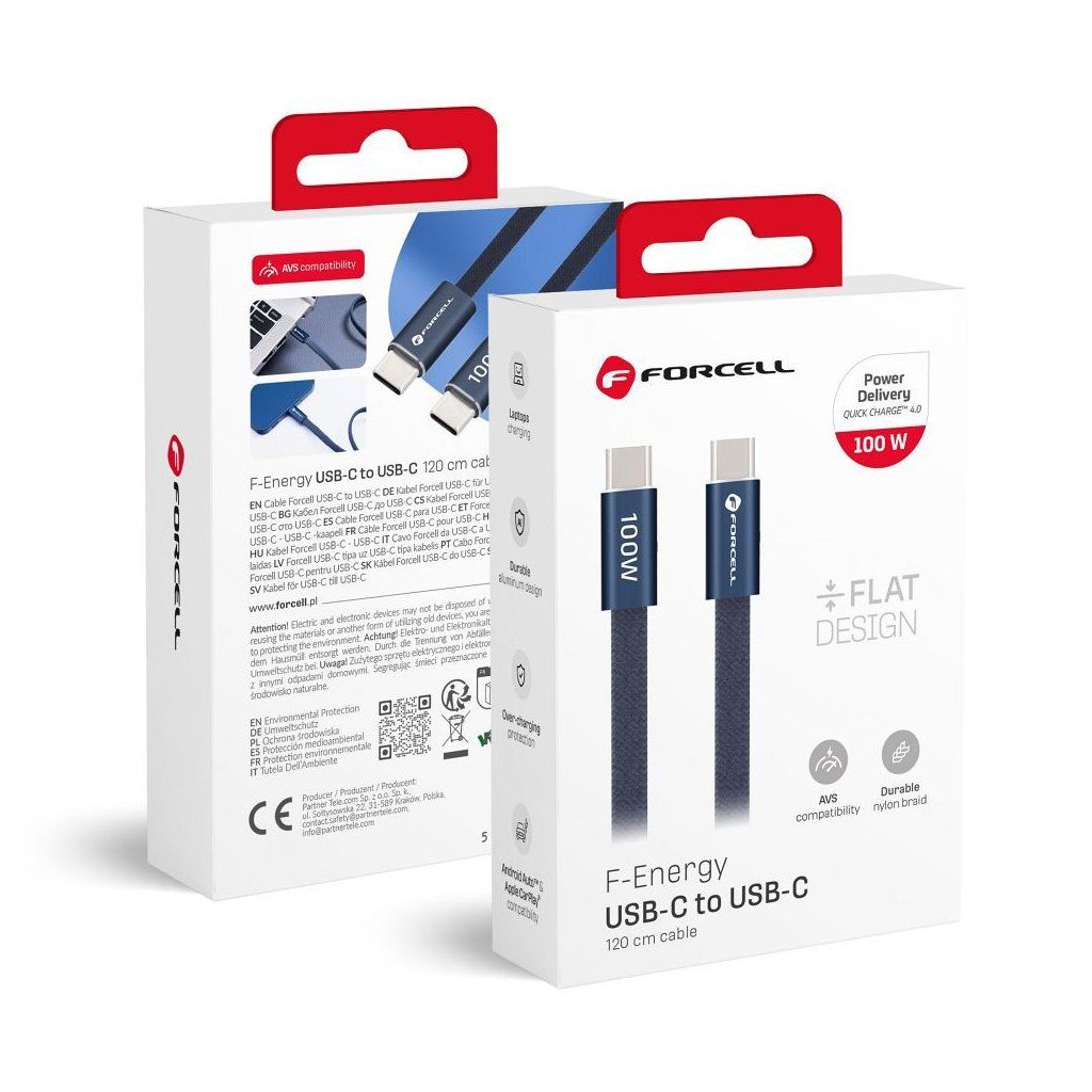 Kábel USB-C na USB-C Forcell F-Energy QC4.0 PD 5 A 100 W Cafule Flat 1,2 m CCFN23 tmavomodrý