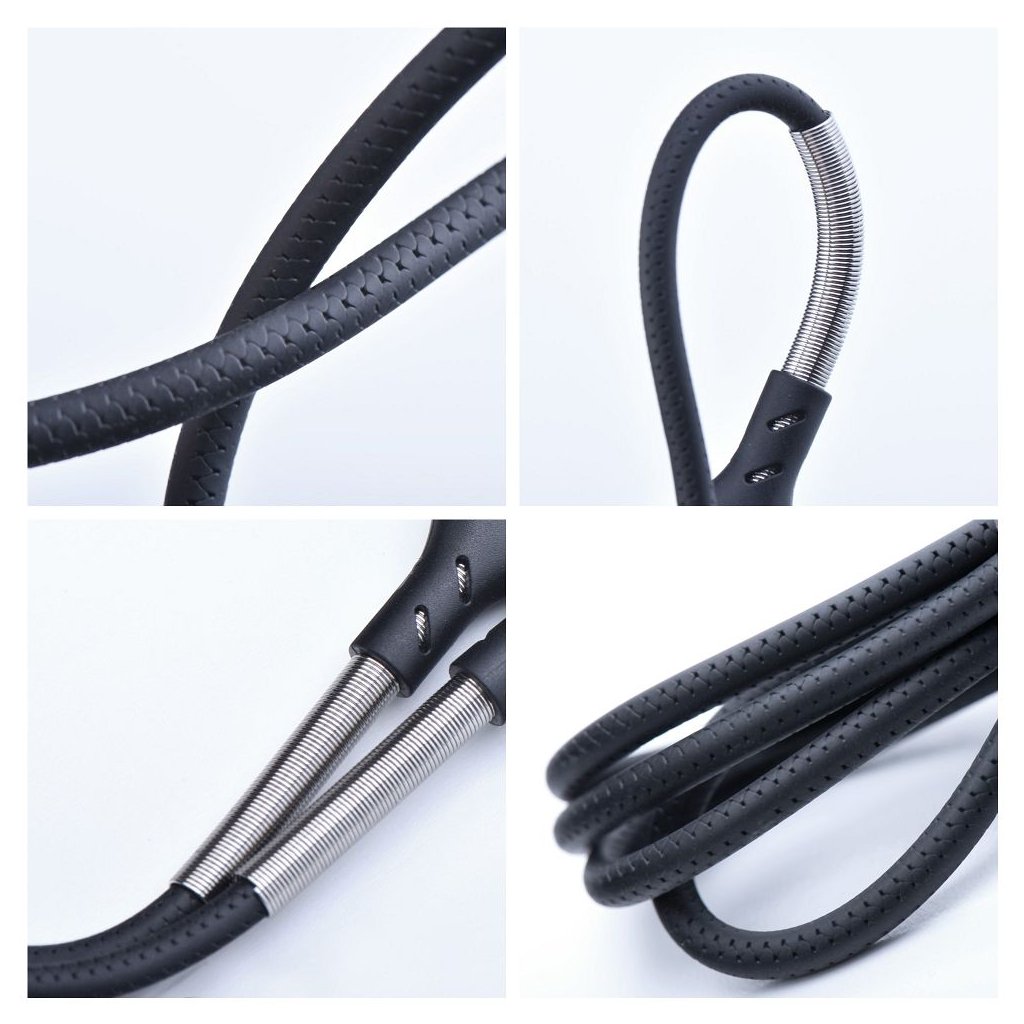 Kábel je vystužený odolným kovovým opletením, ktoré zvyšuje odolnosť proti mechanickému poškodeniu, ohybu a opotrebeniu. Zosilnené konektory s povrchovou úpravou z uhlíkových vlákien zaisťujú dlhodobú spoľahlivosť aj pri intenzívnom používaní.