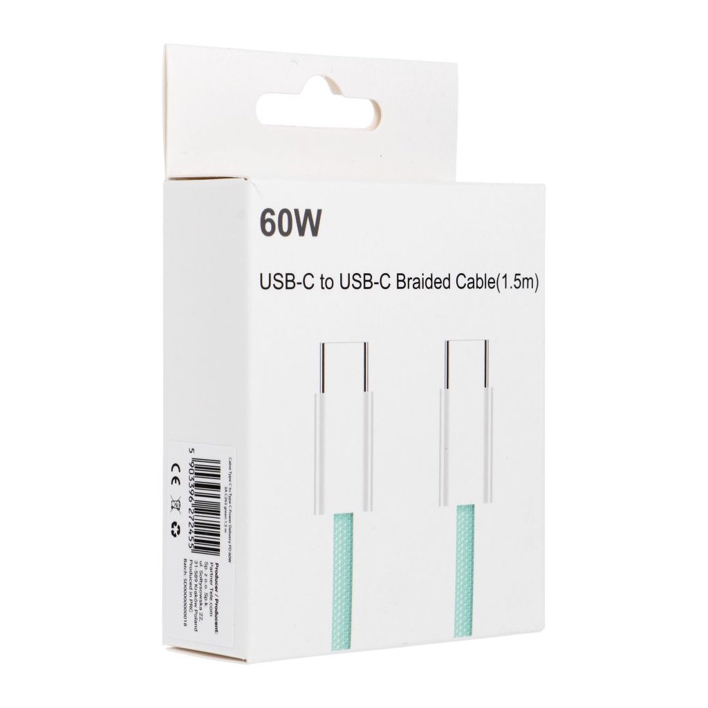 Kábel USB-C na USB-C Power Delivery PD 60W 3A 1,5m zelený C263