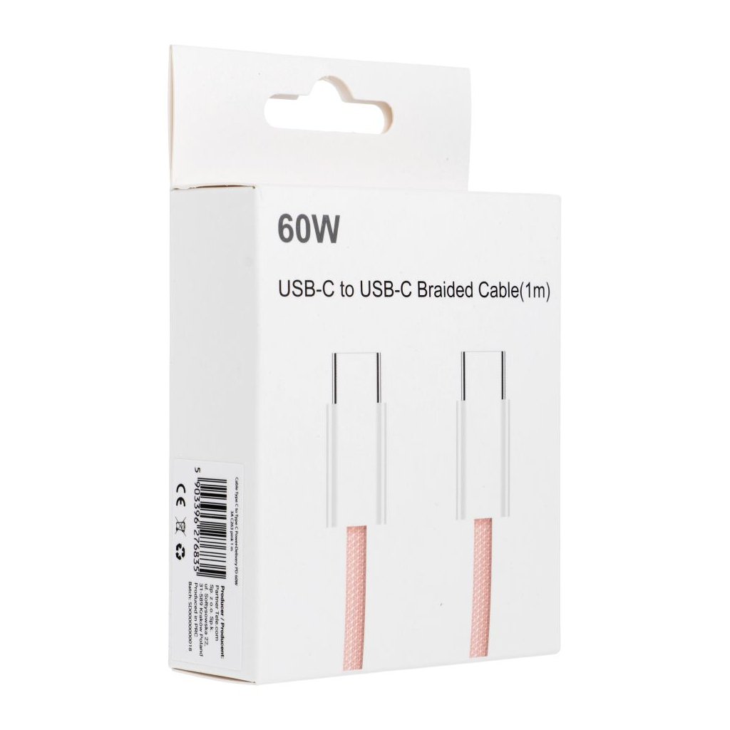 Kábel USB-C na USB-C Power Delivery PD 60W 3A 1m ružový C263