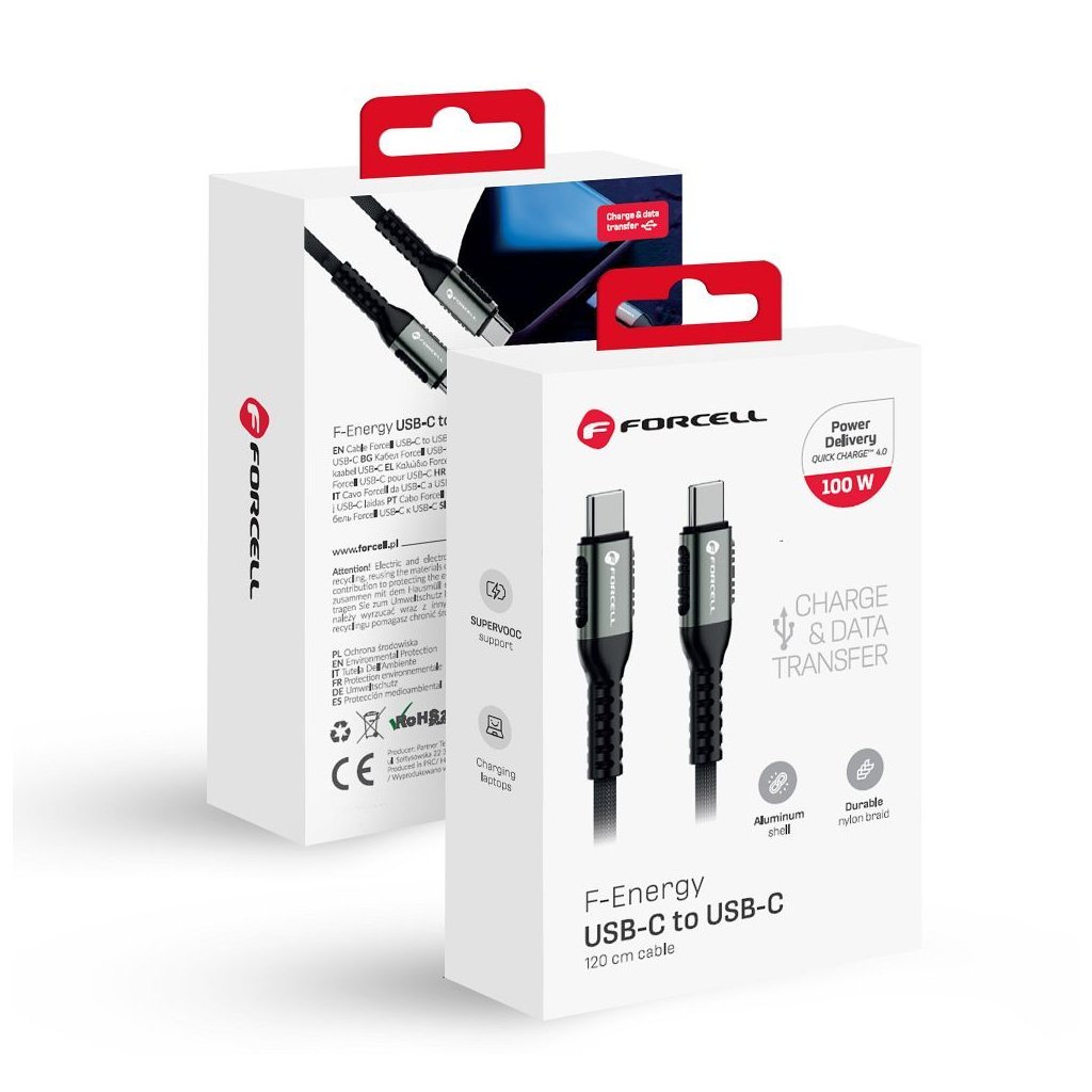 Nabíjací kábel USB-C na USB-C QC4.0 PD 5A 100W Cafule 1,2 m čierny FORCELL F-ENERGY C260
