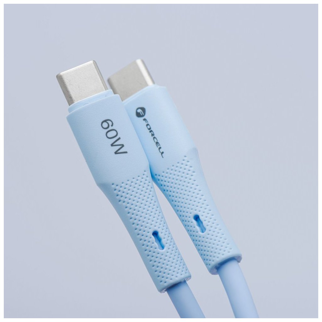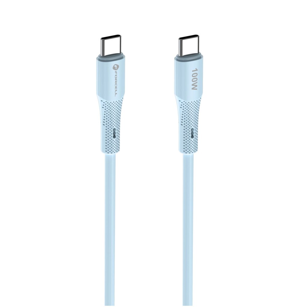 Prepojovací kábel FORCELL F-ENERGY C347 Typ C do Typ C QC4.0 PD 5A 100W silikónový 1 m modrý