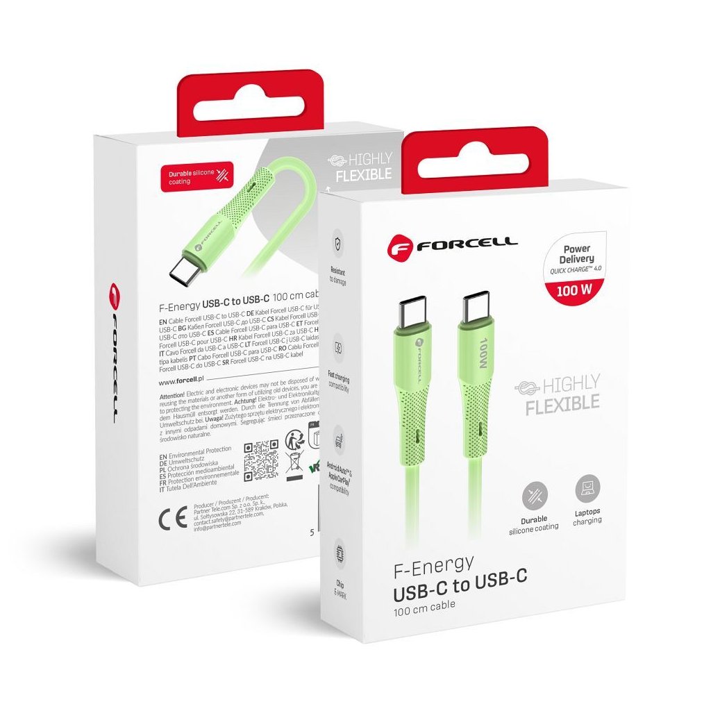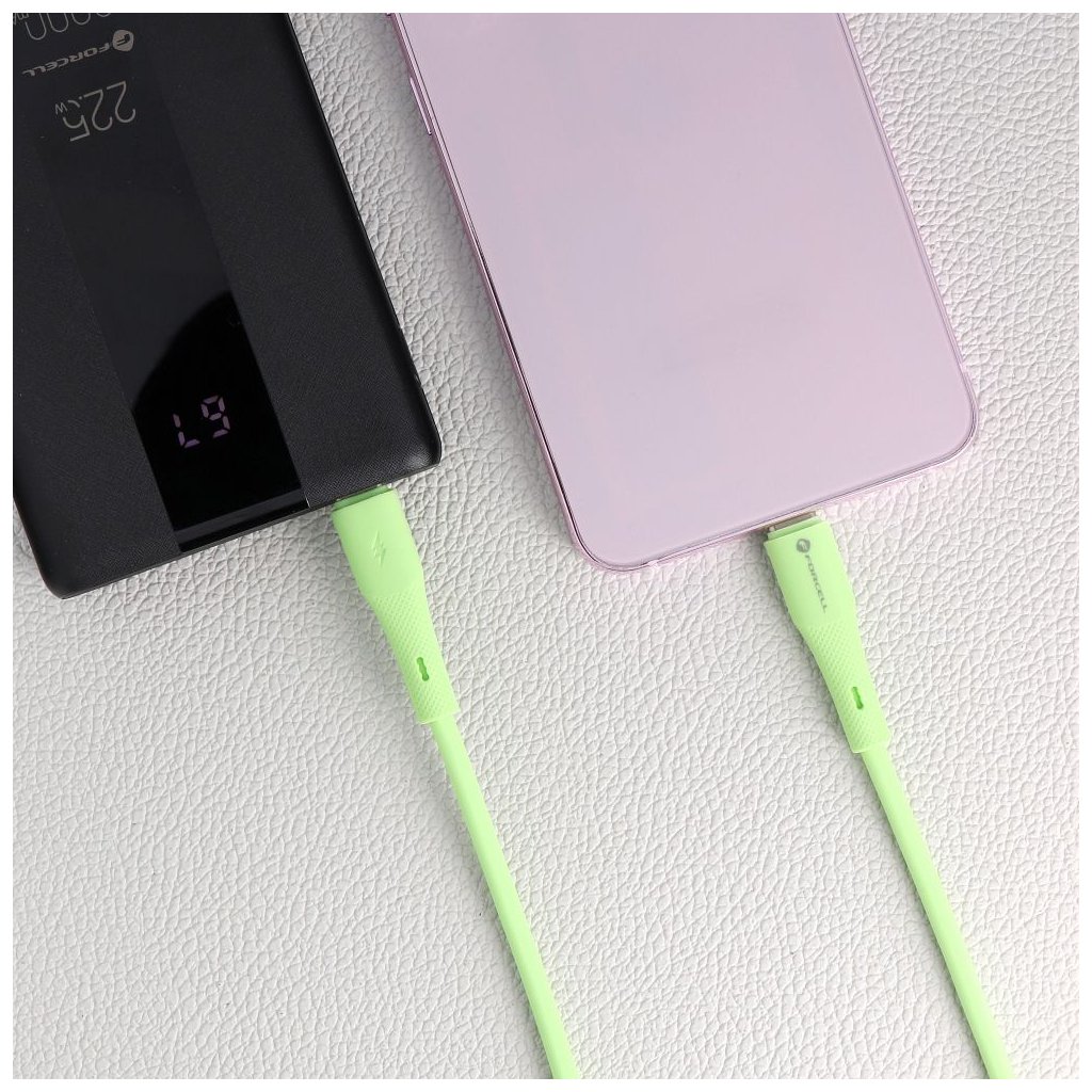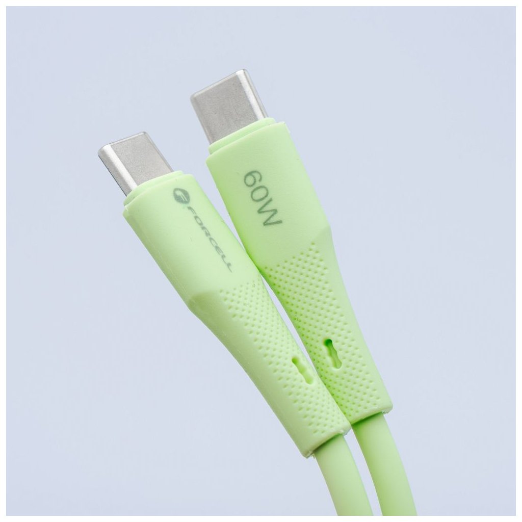 Prepojovací kábel FORCELL F-ENERGY C344, typ C, typ C, QC4.0 PD, 3A, 60W, silikónový, 1 m, zelený