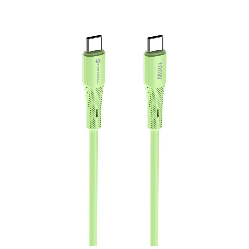 Prepojovací kábel FORCELL F-ENERGY C347 Typ C do Typ C QC4.0 PD 5A 100W silikónový 1 m zelený