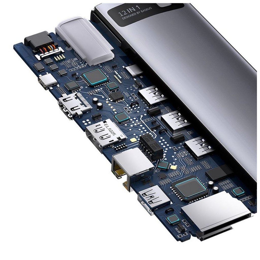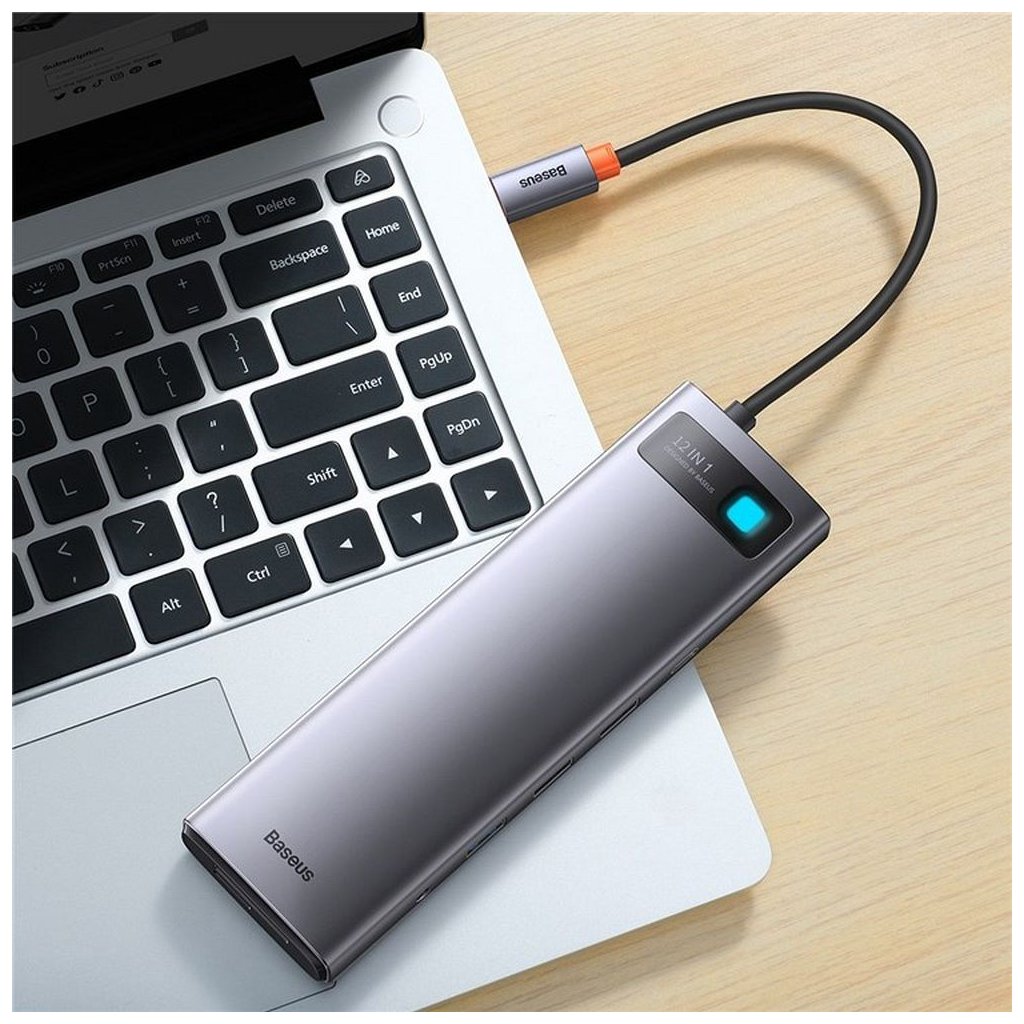 Multifunkčný rozbočovač Baseus Metal Gleam Series 12-in-1 je zariadenie, s ktorým môžete jeden port USB-C premeniť až na 12 portov. Funguje s notebookmi, počítačmi, tabletmi a smartfónmi.