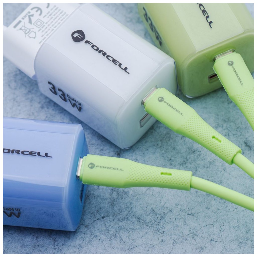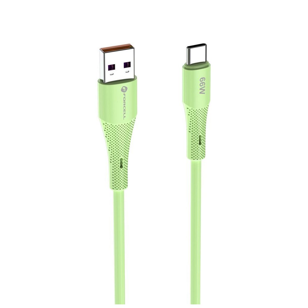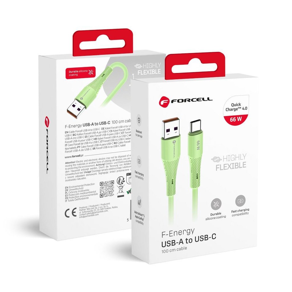 Kábel FORCELL F-ENERGY C342 USB A do Type-C QC4.0 3A 66W silikónový 1 m zelený