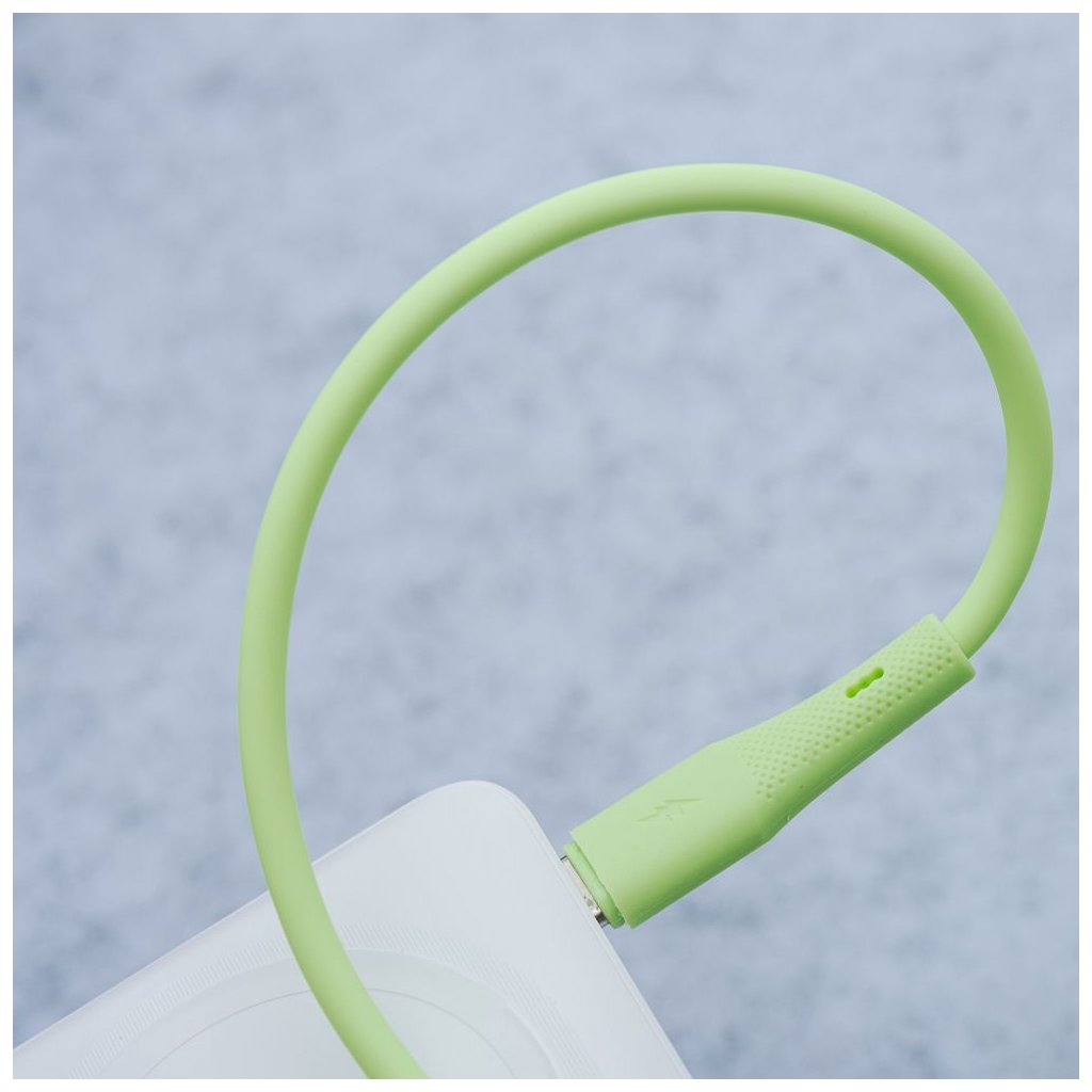 Silikónový materiál zabraňuje zamotaniu kábla, je odolný voči mechanickému poškodeniu a zachováva si tvar aj pri intenzívnom každodennom používaní. Jeho mäkká silikónová štruktúra uľahčuje navíjanie a skladovanie.