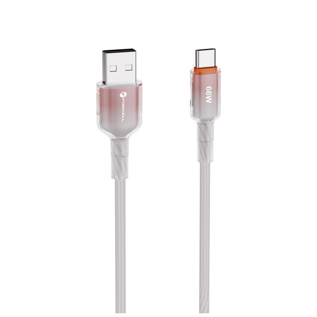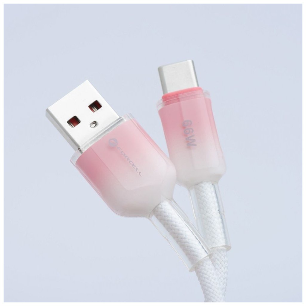 Univerzálny kábel USB-A na USB-C s vysokým výkonom 66 W, ktorý umožňuje rýchle a bezpečné nabíjanie smartfónov a tabletov. Kábel sa od štandardných modelov odlišuje jemne farebným konektorom.