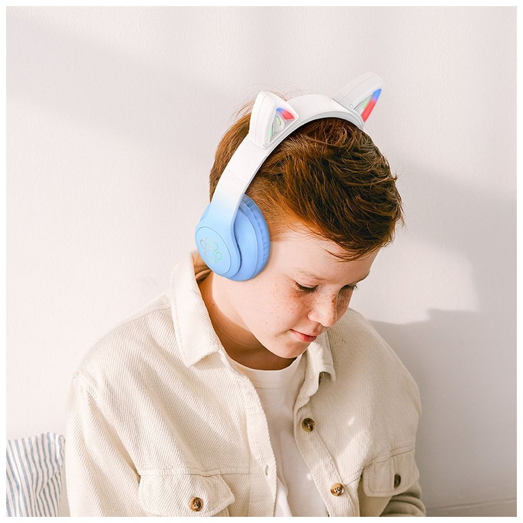 Bezdrôtové slúchadlá Hoco W42 s mačacími ušami. Umožňujú kvalitnú reprodukciu zvuku a efektívne vybavovanie hovorov. Ideálny darček pre deti. Vďaka veľkej kapacite batérie sú slúchadlá ideálnym doplnkom na dlhé cesty a umožňujú počúvať obľúbenú hudbu až niekoľko hodín. Slúchadlá podporujú Bluetooth, TF karty, AUX a ďalšie režimy. Pohodlné náušníky zvyšujú komfort a nezaťažujú uši. Nastaviteľná čelenka umožňuje prispôsobiť parametre výrobku tvaru hlavy používateľa. Vďaka svetelnému dizajnu v tvare mačacích uší je výrobok ideálnym darčekom pre dieťa.