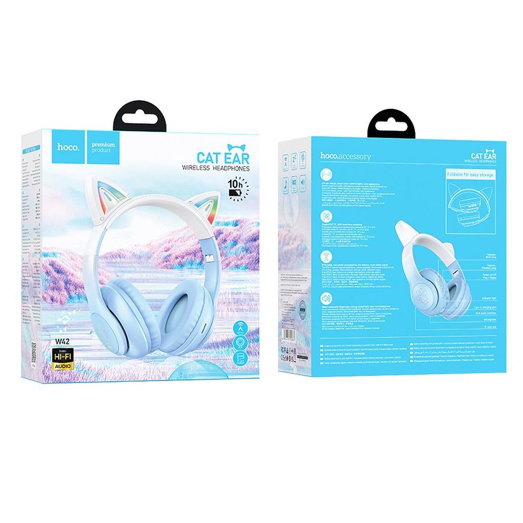Detské bezdrôtové slúchadlá HOCO bluetooth W42 Cat Ear modré