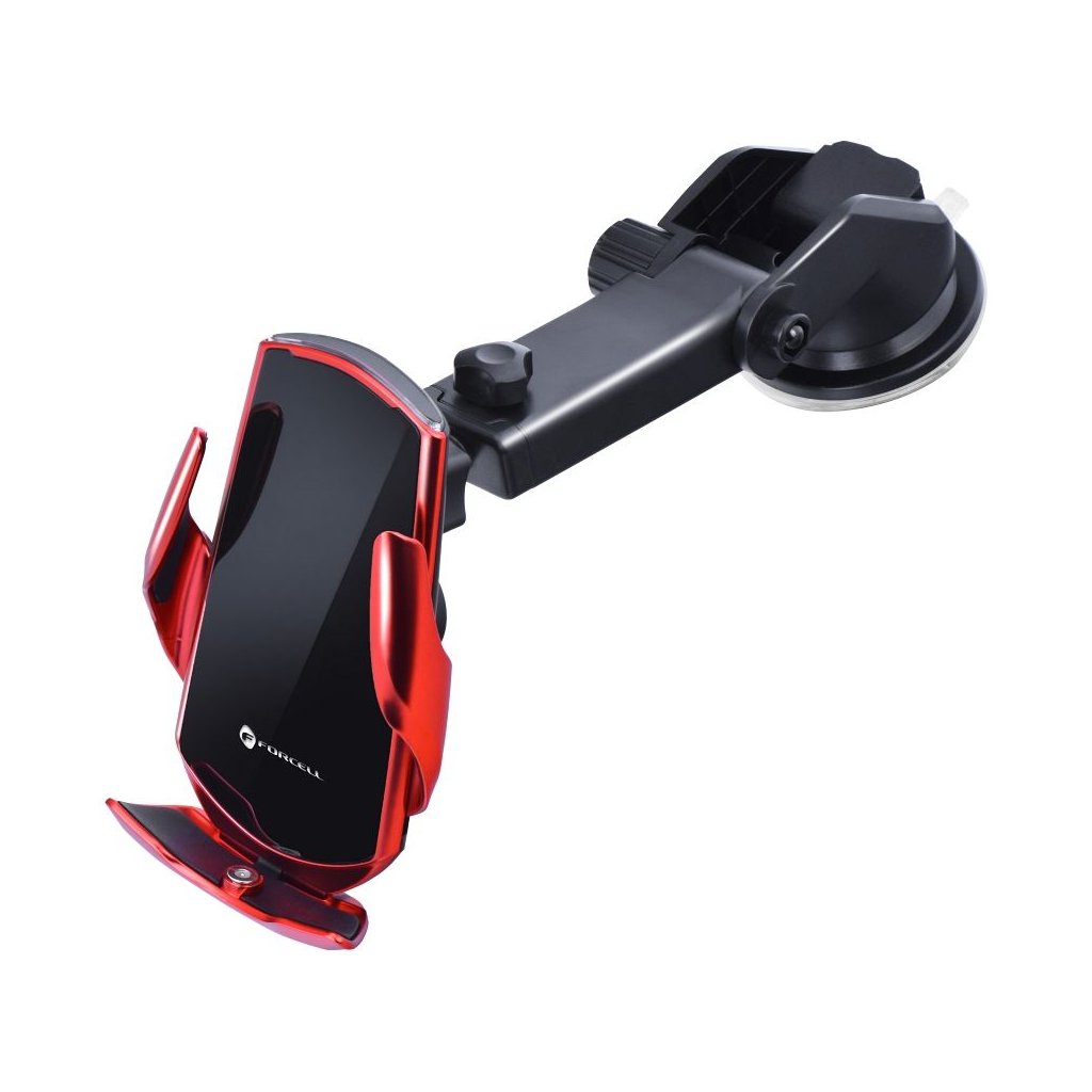 Držiak do auta FORCELL s automatickým snímačom bezdrôtového nabíjania + magnetické adaptéry HS1 15W červený