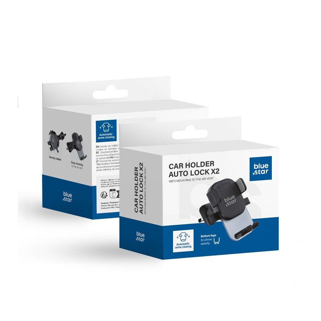 Držiak do auta BLUE STAR AUTO LOCK X2 je funkčný a ľahko použiteľný doplnok do každého vozidla, ktorý vám umožní bezpečne a stabilne umiestniť telefón. Je navrhnutý tak, aby sa dal namontovať na mriežku nasávania vzduchu, a poskytuje viditeľnosť a prístup k vášmu mobilnému zariadeniu počas jazdy bez toho, aby obmedzoval výhľad cez čelné sklo.