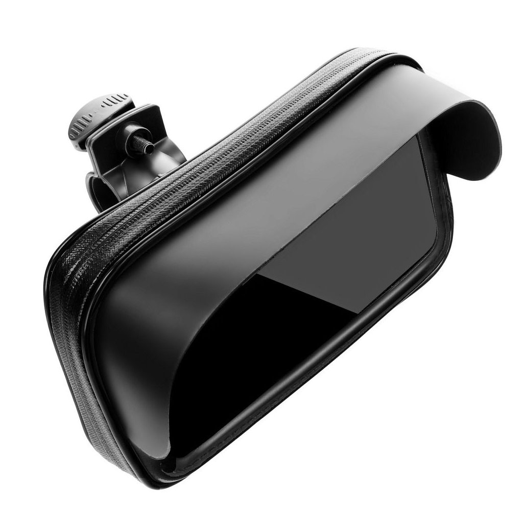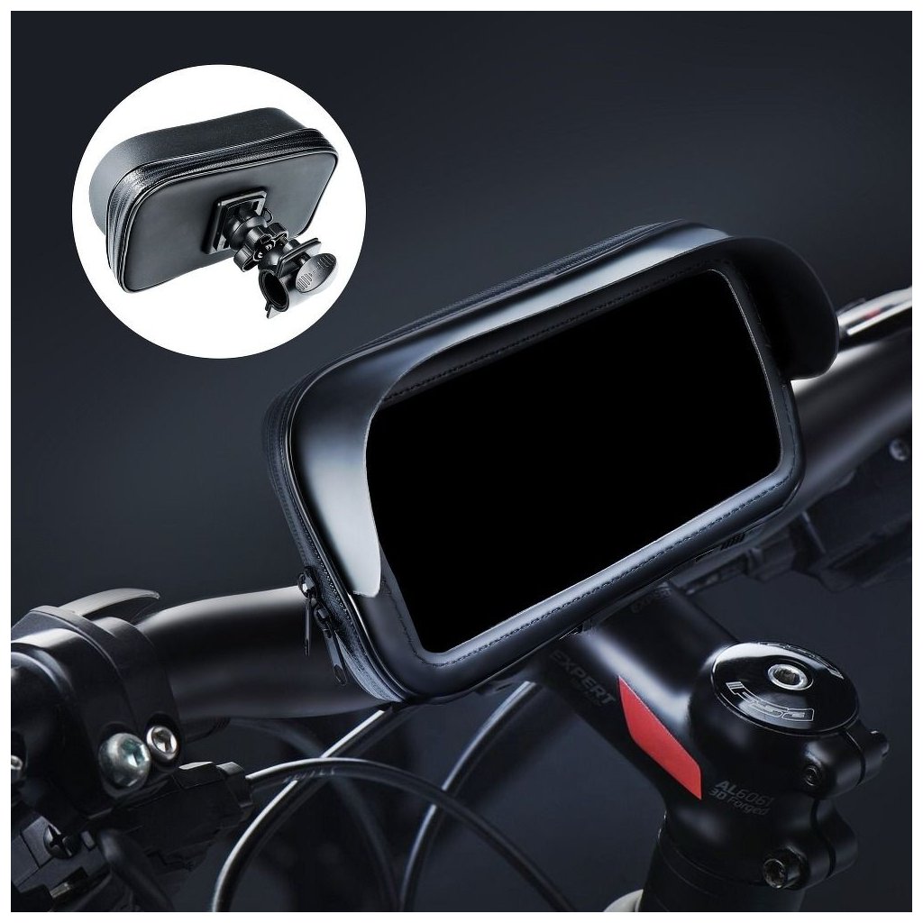 Vodotesný držiak na mobil na bicykel s priehradkou a zapínaním na zips. Zvyšuje bezpečnosť používania smartfónu počas jazdy na bicykli a upevňuje sa na rám bicykla. Nakoľko je vodotesný je ho možné využívať v náročných podmienkach a chráni zariadenie pred vlhkosťou a zaplavením.