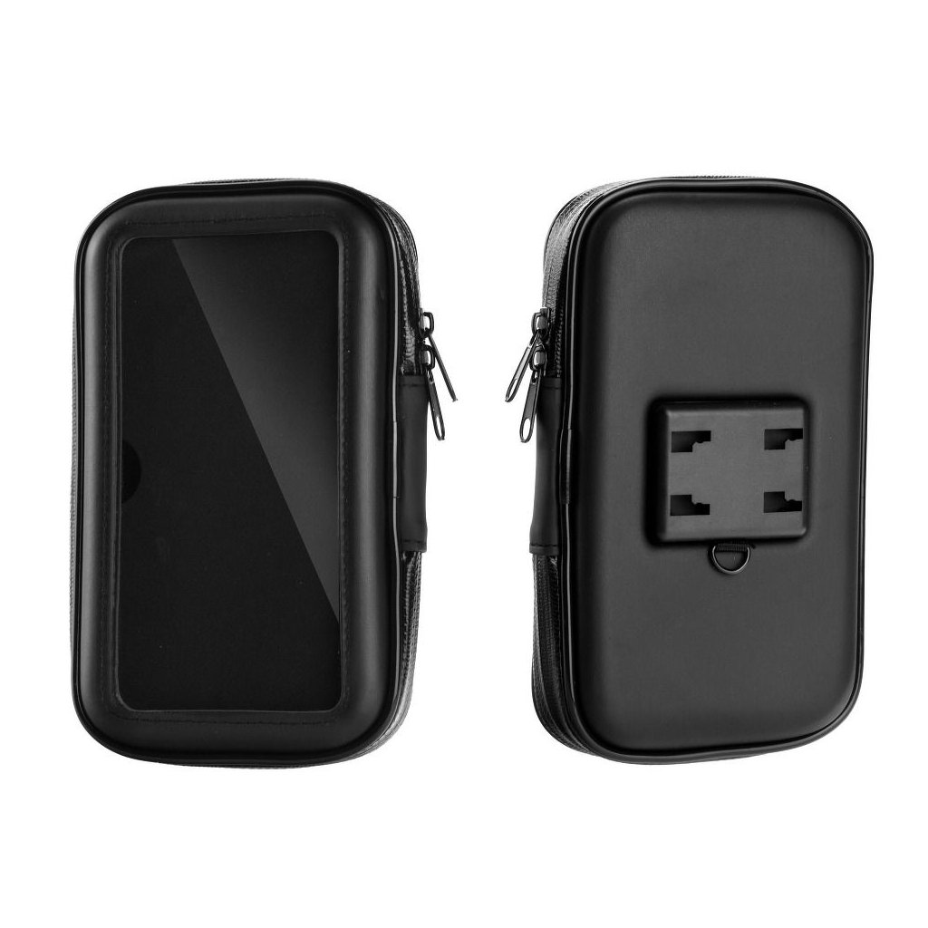Praktické vodotesné puzdro na mobil na motorku, prípadne skúter. Pripevňuje sa na rám, riadidlá alebo zrkadlo. Puzdro poskytuje trvalý náhľad na displej a chráni zariadenie pred vlhkosťou, nárazmi, poškriabaním. Puzdro je pohodlné a funkčné. Je navrhnutý tak, aby bol zabezpečený maximálny komfort - malé priehľadné vrecko umožňuje použitie navigácie a iných hmatových zariadení. Puzdro sa zapína na zips, čo zaručuje dokonalú ochranu zariadení. Flexibilná úchyt v tvare oblúka umožňuje nastavenie zariadenia pod ľubovoľným uhlom. Inštalácia celého príslušenstva je veľmi jednoduchá.