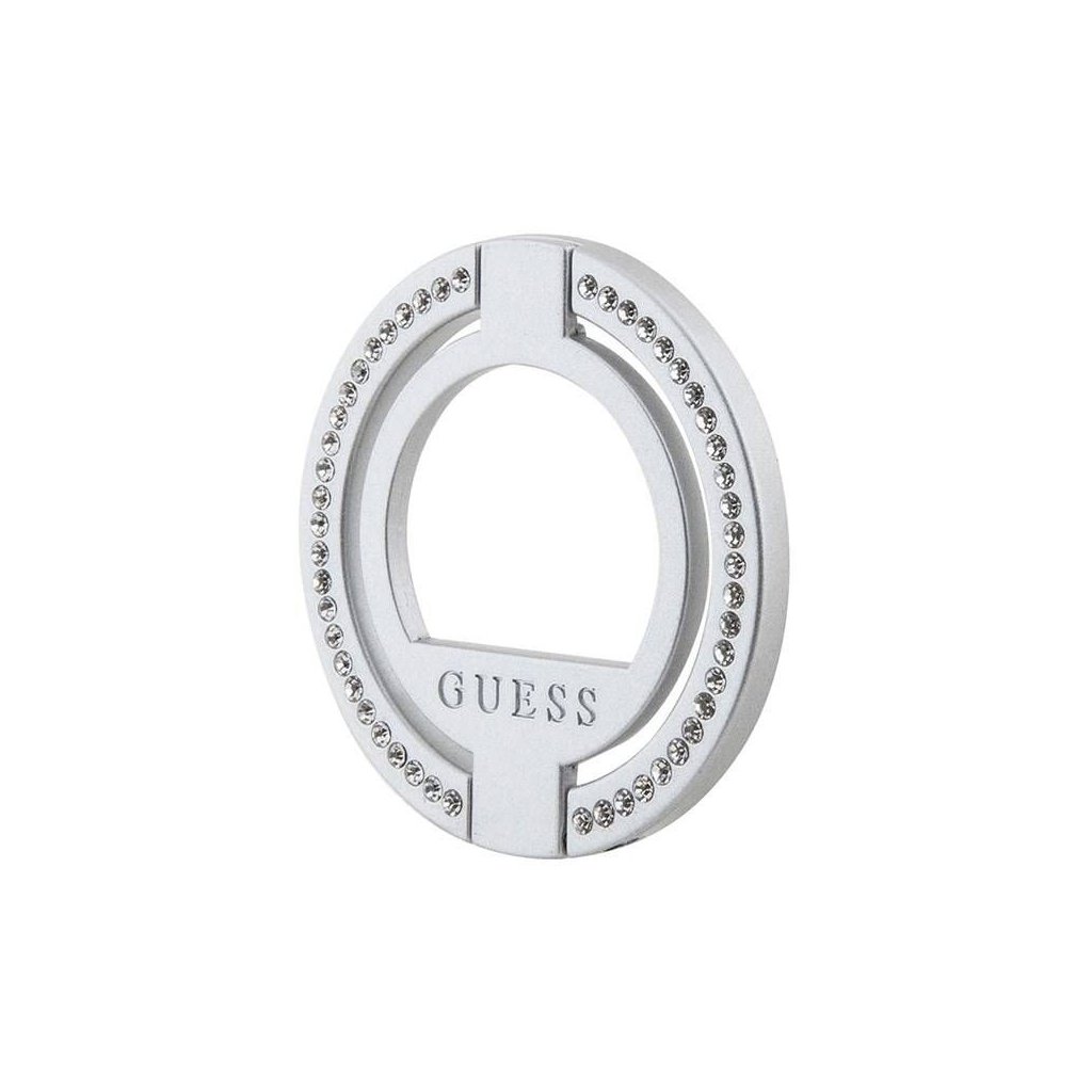 Držiak Guess Ring MagSafe ponúka ohromujúci dizajn. Pri výrobe boli použité tie najkvalitnejšie materiály, výsledkom čoho je elegantný prsteň, ktorý vyzerá mimoriadne štýlovo. Je zdobený desiatkami kryštálov okolo základne prsteňa - vďaka tomu držiak vyžaruje luxus a sofistikovanosť a dodáva vášmu telefónu šmrnc.