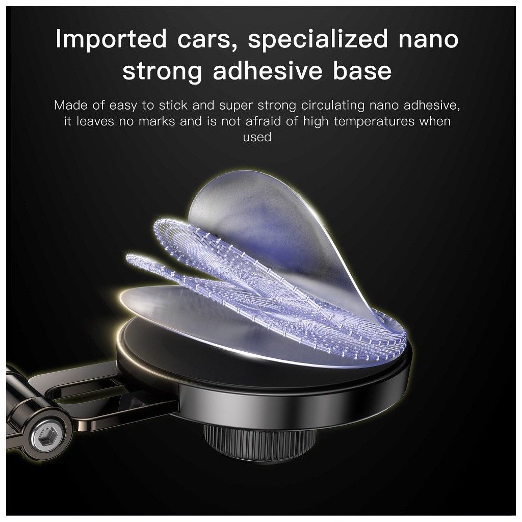 Magnetický držiak do auta je vyrobený z odolných materiálov, má skladacie kovové vyhotovenie a je voľne nastaviteľný. Možno ho pripevniť na čelné sklo, palubnú dosku alebo iný rovný povrch. Držiak umožňuje pohodlné a bezpečné používanie smartfónu počas jazdy.