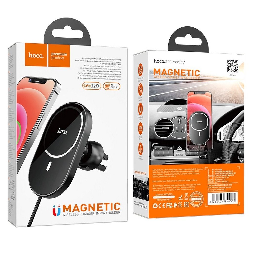 Držiak HOCO do vetracieho otvoru s podporou nabíjania MagSafe 15W CA90 čierna