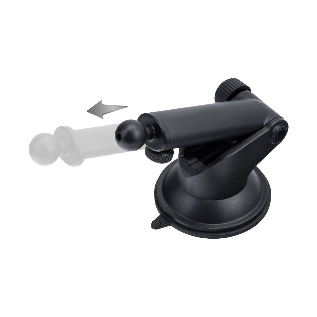 Praktický držiak mobilného telefónu s prísavkou na pripevnenie na palubnú dosku alebo čelné sklo. Držiak je plne nastaviteľný vrátane dĺžky ramena - možno ho zdvihnúť až o 14 cm, nakloniť do vertikálnej polohy a jeho koncovka sa otáča o 360°. Umožňuje pohodlné vkladanie a vyberanie telefónu jednou rukou.