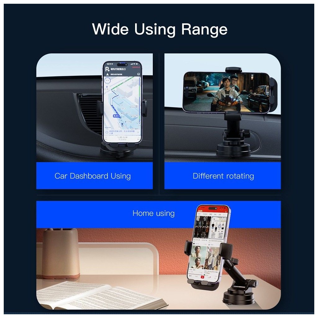 Držiak je vyrobený z vysokokvalitného plastu a montuje sa na čelné sklo alebo palubnú dosku, čím zaručuje veľmi dobrú viditeľnosť počas jazdy a umožňuje vám bezpečne dosiahnuť cieľ.