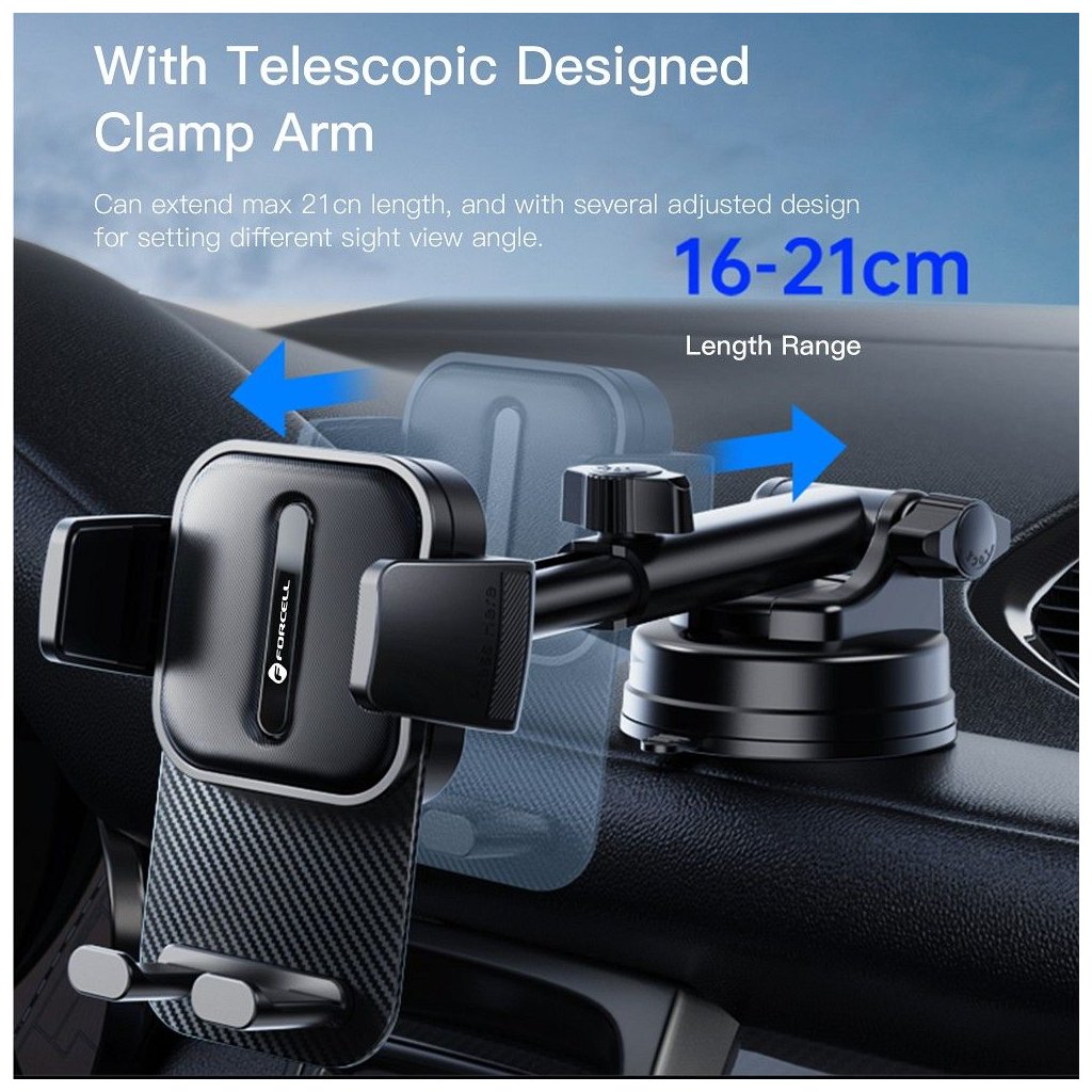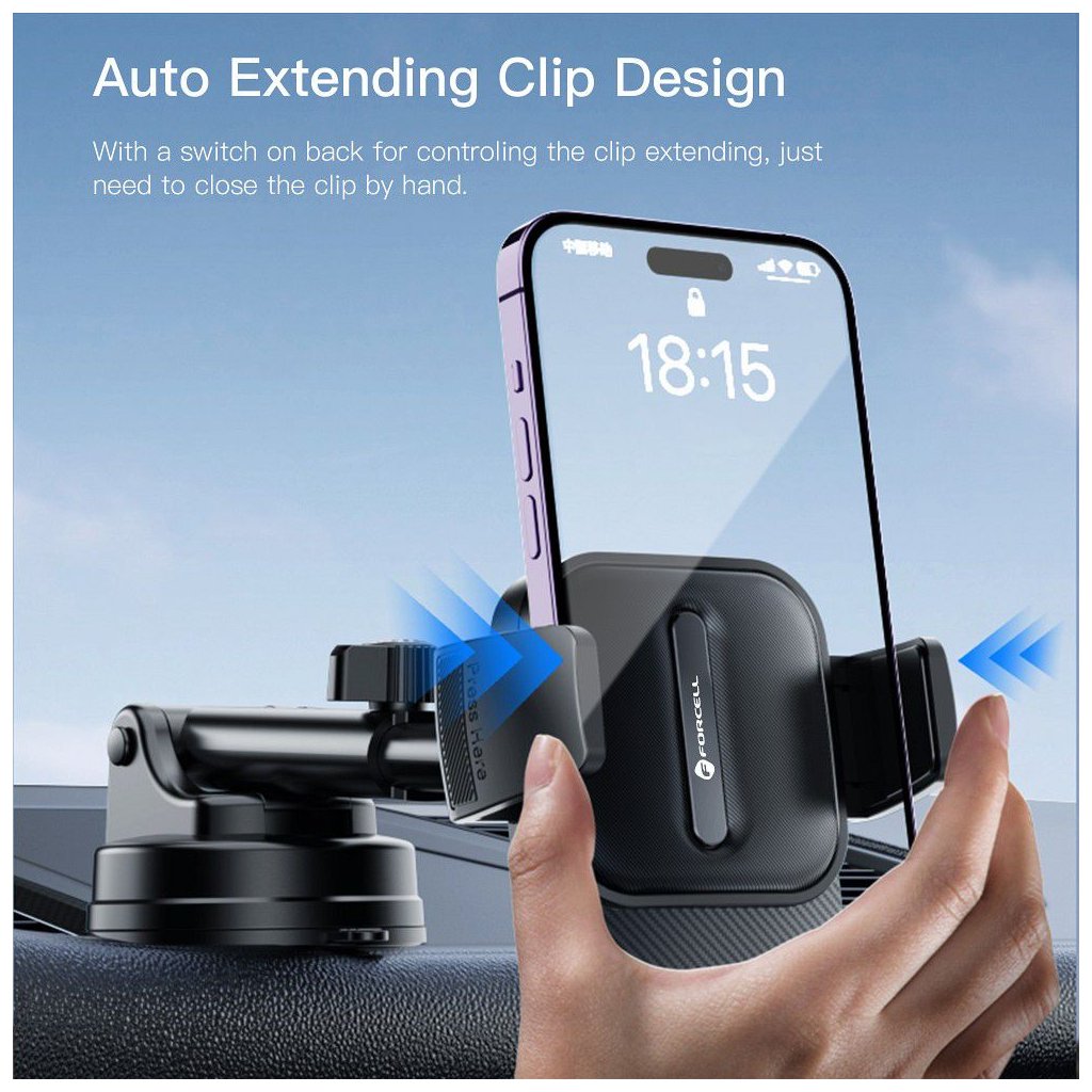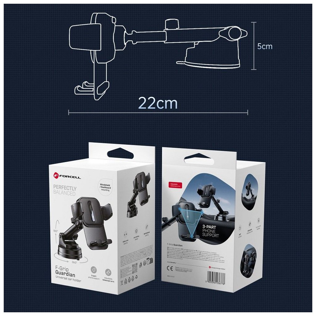 Držiak do auta FORCELL F-Grip Guardian pre telefón na čelné sklo/ palubnú dosku čierny