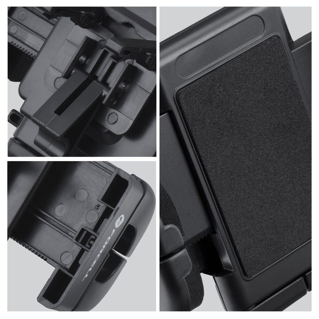 Vďaka držiaku Forcell budete mať svoj telefón počas jazdy vždy po ruke. Jeho ramená s uvoľňovacím tlačidlom vám umožnia vložiť alebo vybrať zariadenie. Odolná konštrukcia umožňuje montáž zariadenia vo zvislej polohe - vstupy na nabíjanie a slúchadlá zostanú nezakryté, takže ich môžete pohodlne používať počas celej cesty. Silné svorky udržia smartfón v stabilnej polohe aj počas dynamickej jazdy a mäkká pena chráni zariadenie pred poškriabaním.