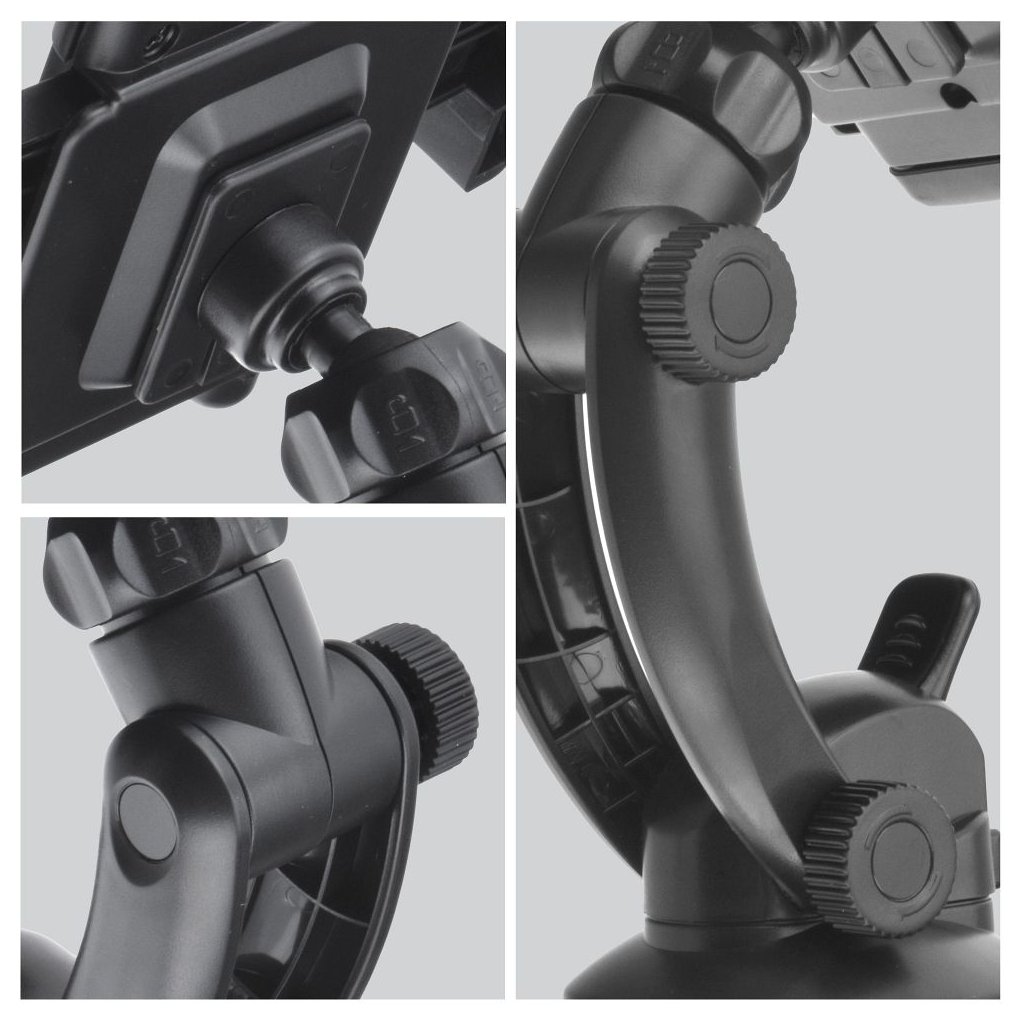 Vyrobený z vysokokvalitného plastového držiaka s chrómovými estetickými vložkami vám poskytuje niekoľko možností montáže. Vďaka nastaviteľnému ramenu a prísavke vystuženej prídavnou svorkou ho možno umiestniť na čelné sklo alebo na hladký povrch palubnej dosky. Ak však chcete minimalizovať možné problémy s viditeľnosťou, a tým zvýšiť bezpečnosť, stačí rameno z držiaka odmontovať a následne ho umiestniť do vetracieho otvoru. V oboch prípadoch pevné upnutie zaručuje, že zariadenie zostane na mieste a nepoškodí sa ani na veľmi hrboľatých cestách.