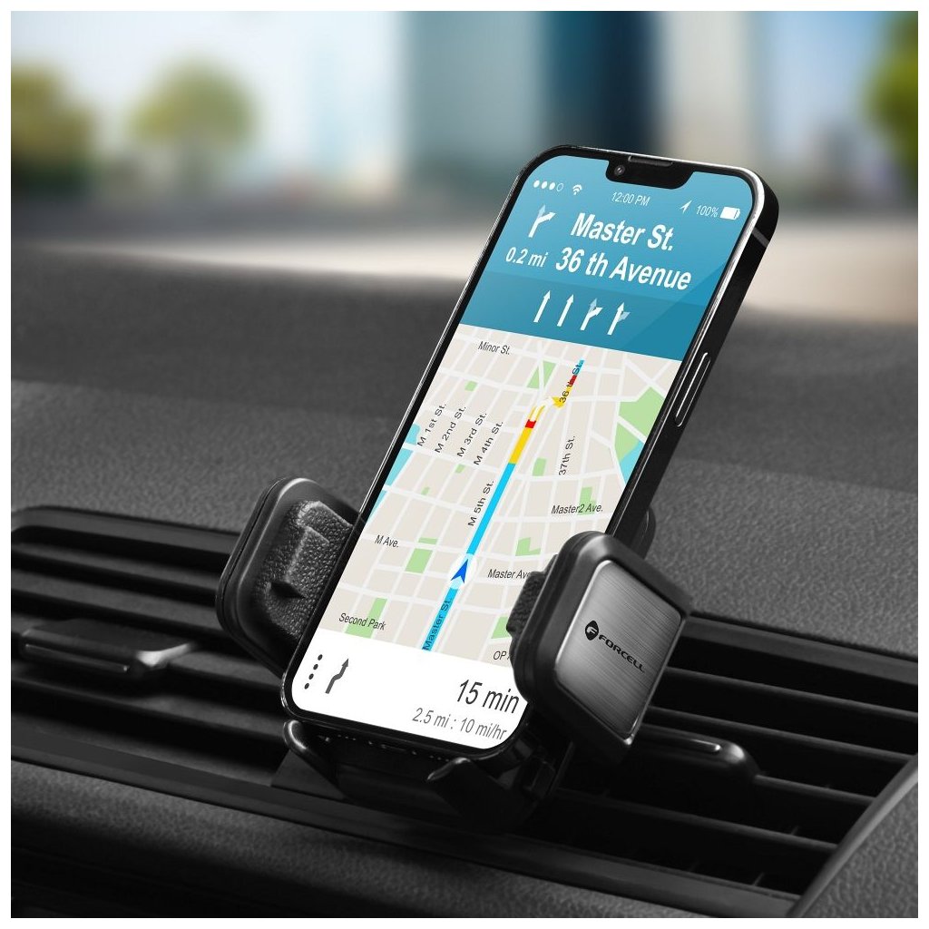 Vďaka držiaku Forcell budete mať svoj telefón počas jazdy vždy po ruke. Jeho ramená s uvoľňovacím tlačidlom vám umožnia vložiť alebo vybrať zariadenie. Odolná konštrukcia umožňuje montáž zariadenia vertikálne alebo horizontálne - vstupy na nabíjanie a slúchadlá zostanú nezakryté, takže ich môžete pohodlne používať počas celej cesty. Silné svorky udržia smartfón v stabilnej polohe aj počas dynamickej jazdy a mäkká pena chráni zariadenie pred poškriabaním.