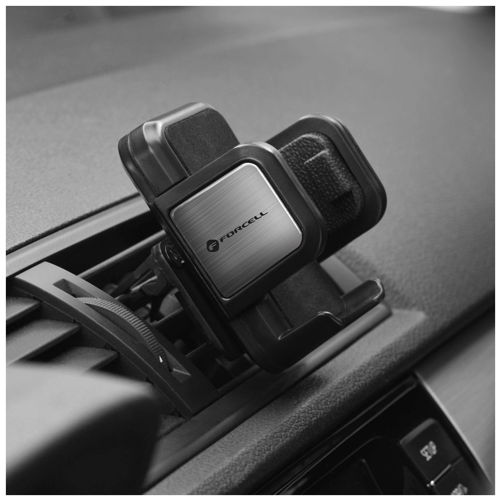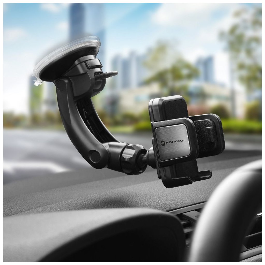 Držiak na mobil 2v1 do auta FORCELL - CHROME s oblúkom 15 cm