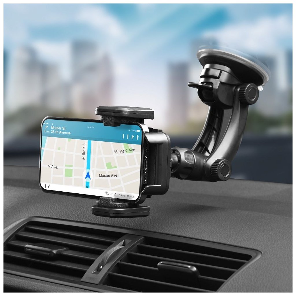 Vďaka rôznym možnostiam nastavenia si držiak ľahko prispôsobíte vlastným potrebám. Osvedčí sa pri zdieľaní jedného auta viacerými vodičmi. Rozstup ramien je taký široký (40-110 mm), že k nemu ľahko pripevníte smartfóny alebo navigácie rôznych veľkostí. Spodné nožičky zabránia náhodnému skĺznutiu zariadenia. Dlhé rameno s možnosťou otáčania o 360° umožňuje otočiť držiak tak, aby ste získali správny uhol pre svoj zrak. Sledujte navigáciu, posúvajte oznámenia alebo prepínajte skladby na displeji v úplnom bezpečí pre seba aj spolucestujúcich.
