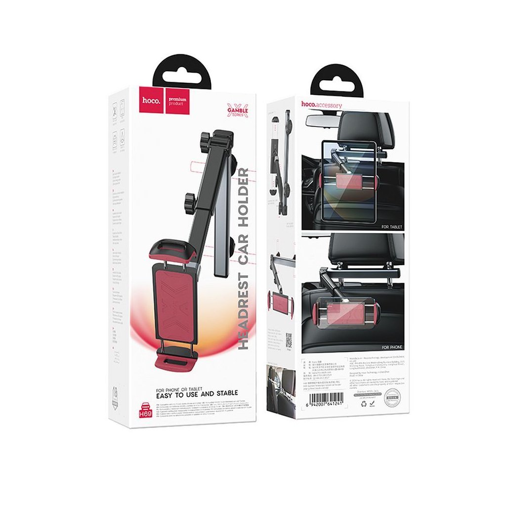 Teleskopický držiak do auta HOCO na opierku hlavy (4,5" - 13") H69 čierny a červený